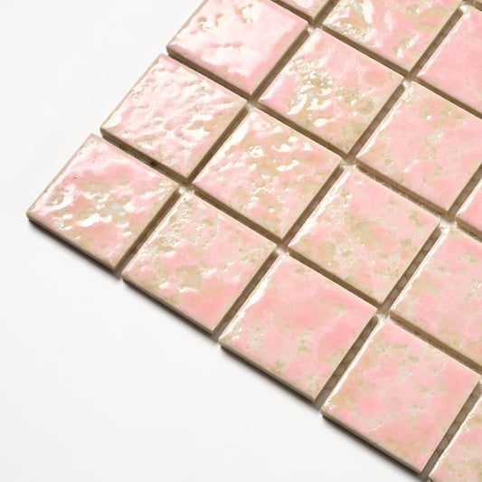 Vintage Pink Iridescent Japanese 1960s Wall Tile, 19 Sq Ft Available