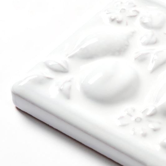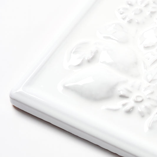 1980s Vintage Italian Raised White Floral Border Tile, 104 Linear Ft Available - 26 Linear Ft Per Box