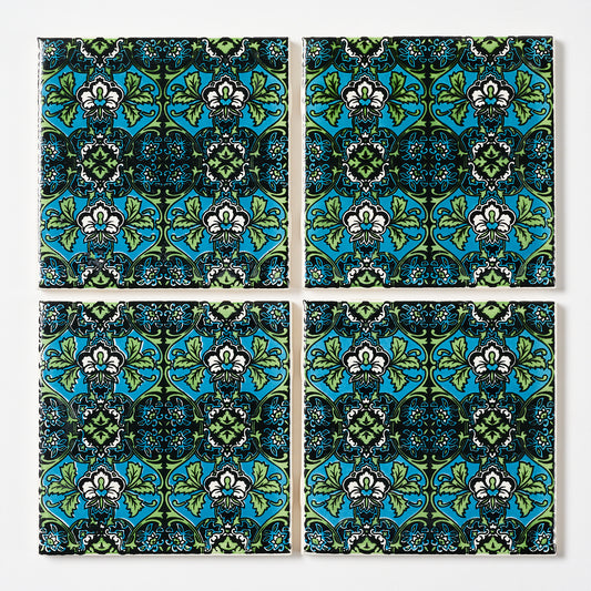 1970s Vintage Italian Blue Floral Wall Tile, 306 Sq Ft Available - 18 Sq Ft Per BoxRegular price $720.00 USDRegular priceUnit price / per-