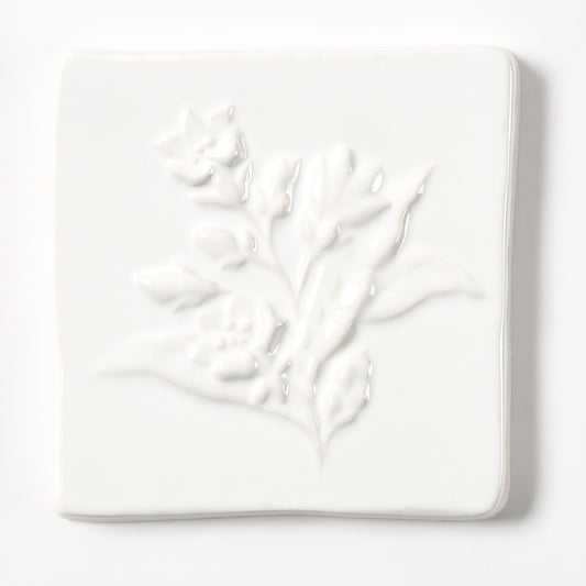 1980s Vintage Italian Raised White Mixed Floral Tile, 32 Sq Ft Available - 16 Sq Ft Per Box