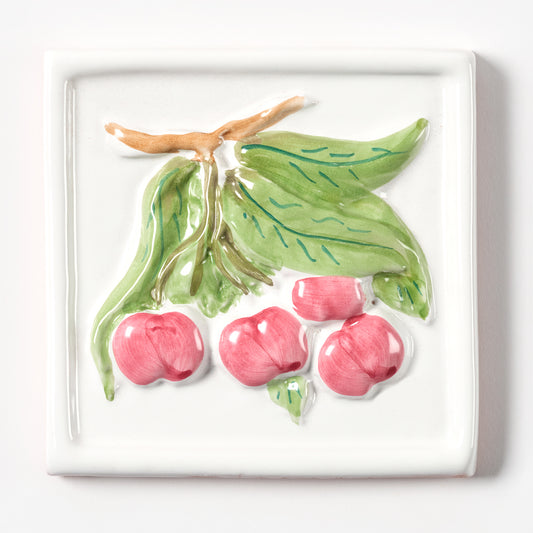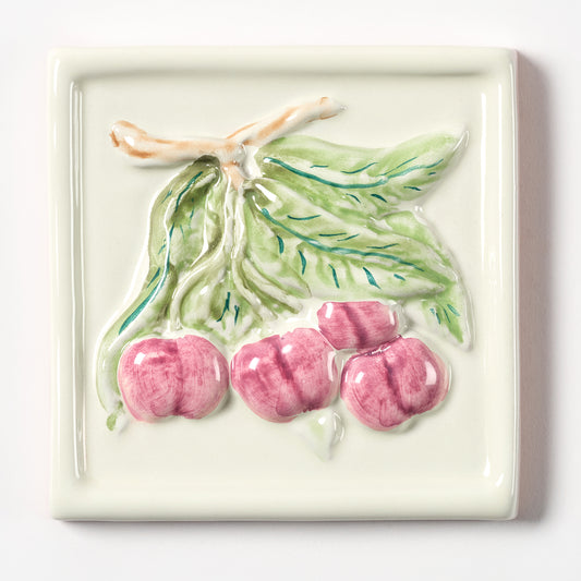 1980s Vintage Italian Raised Cherry on White Tile, 14.5 Sq Ft Available