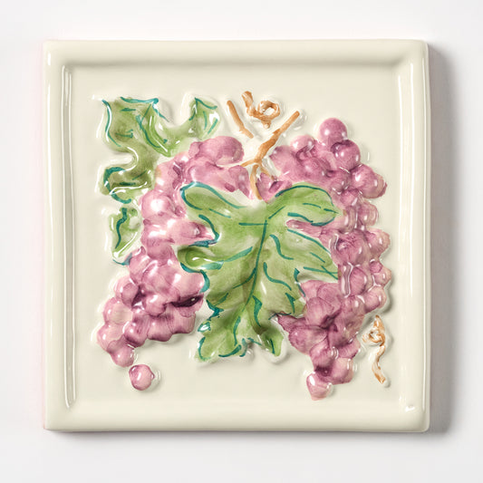1980s Vintage Italian Raised Grapes on White Tile, 10.5 Sq Ft Available