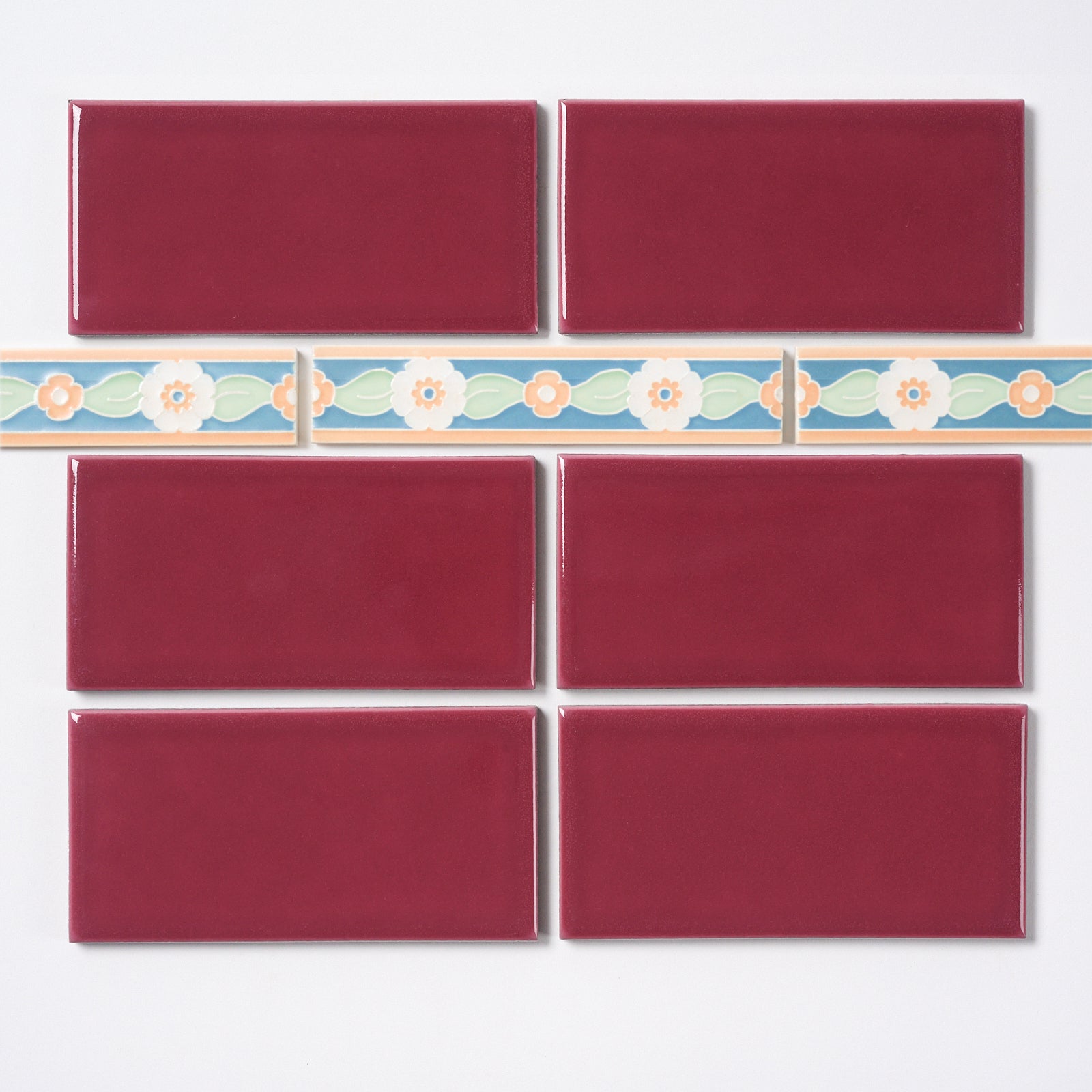 All of the trim pieces are shown with 1950s burgundy Romany wall tile, this can be found in Wall Tiles.