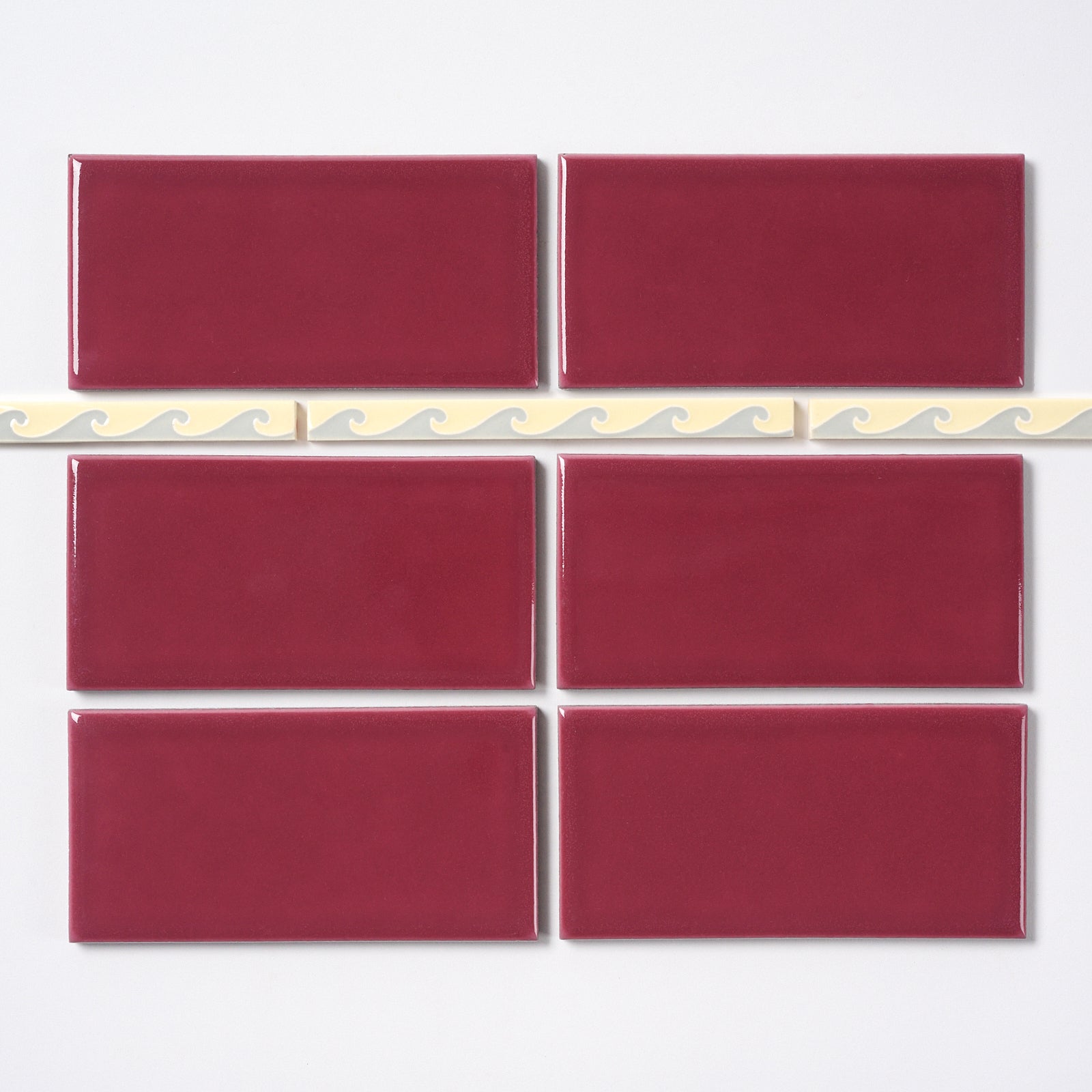 All of the trim pieces are shown with 1950s burgundy Romany wall tile, this can be found in Wall Tiles.