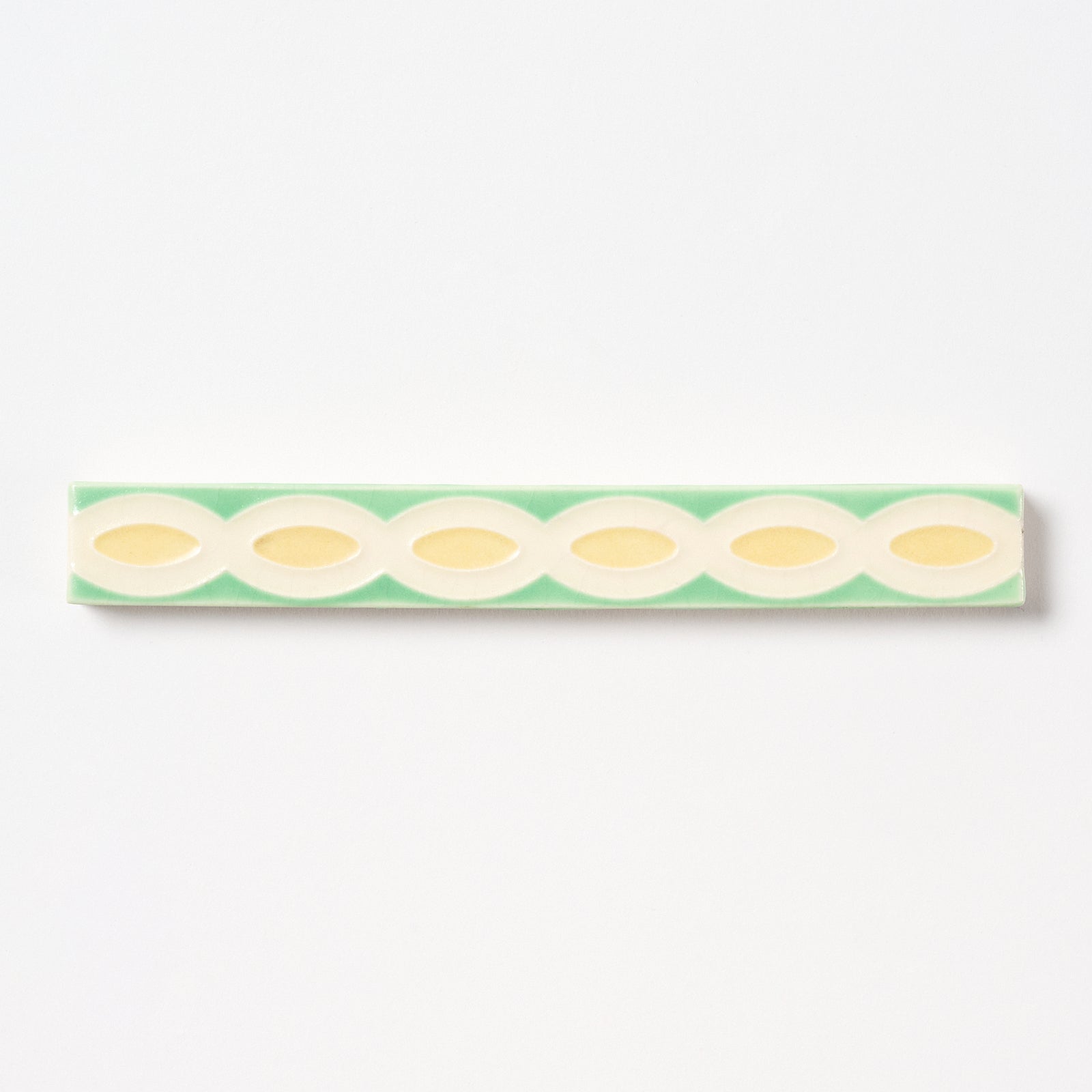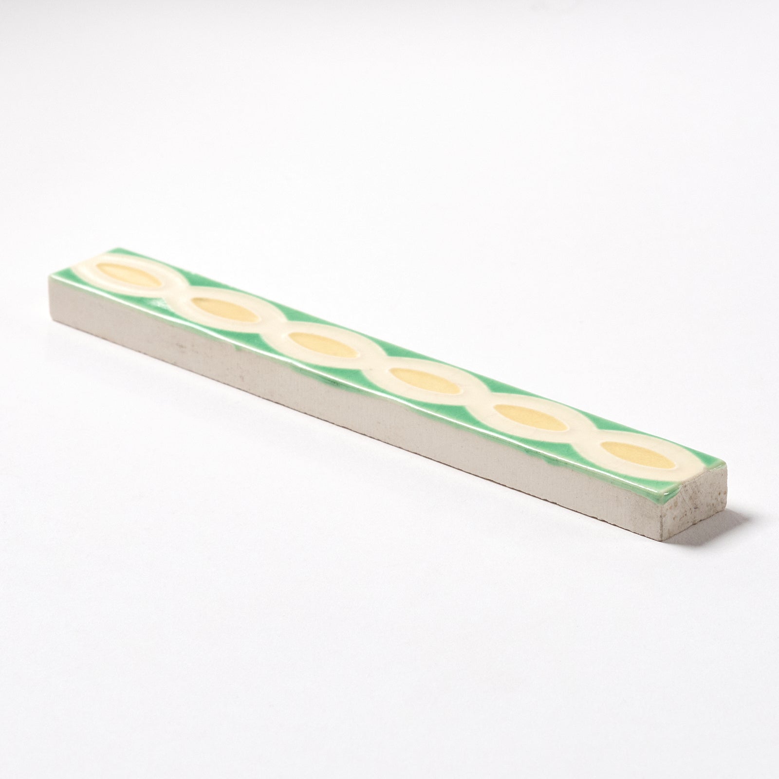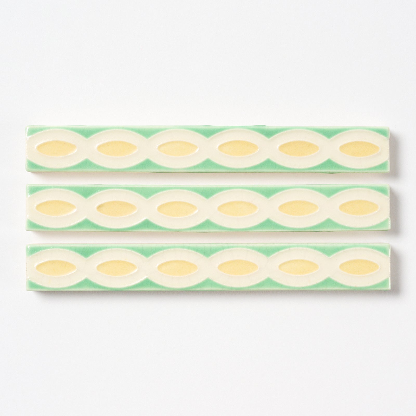 1920s American Encaustic Yellow & Green Ribbon Trim Tile, 17 Pc Set - 8.5 Linear Feet Total