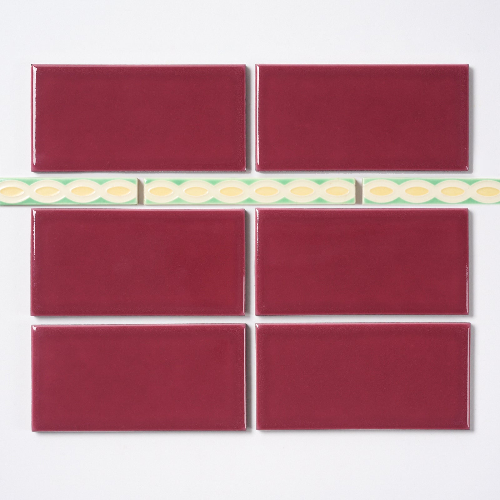 All of the trim pieces are shown with 1950s burgundy Romany wall tile, this can be found in Wall Tiles.