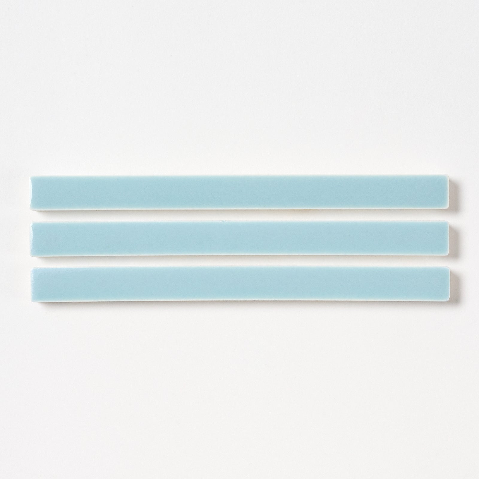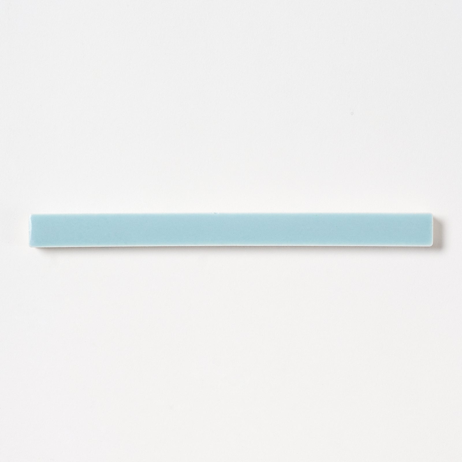 This iconic, historic 1920s trim tile has a blue solid pattern. Each tile is 1/2” wide x 6" long, 5/16” thick. Manufactured in the USA by Suntile/ The Cambridge Tile Mfg. Company.