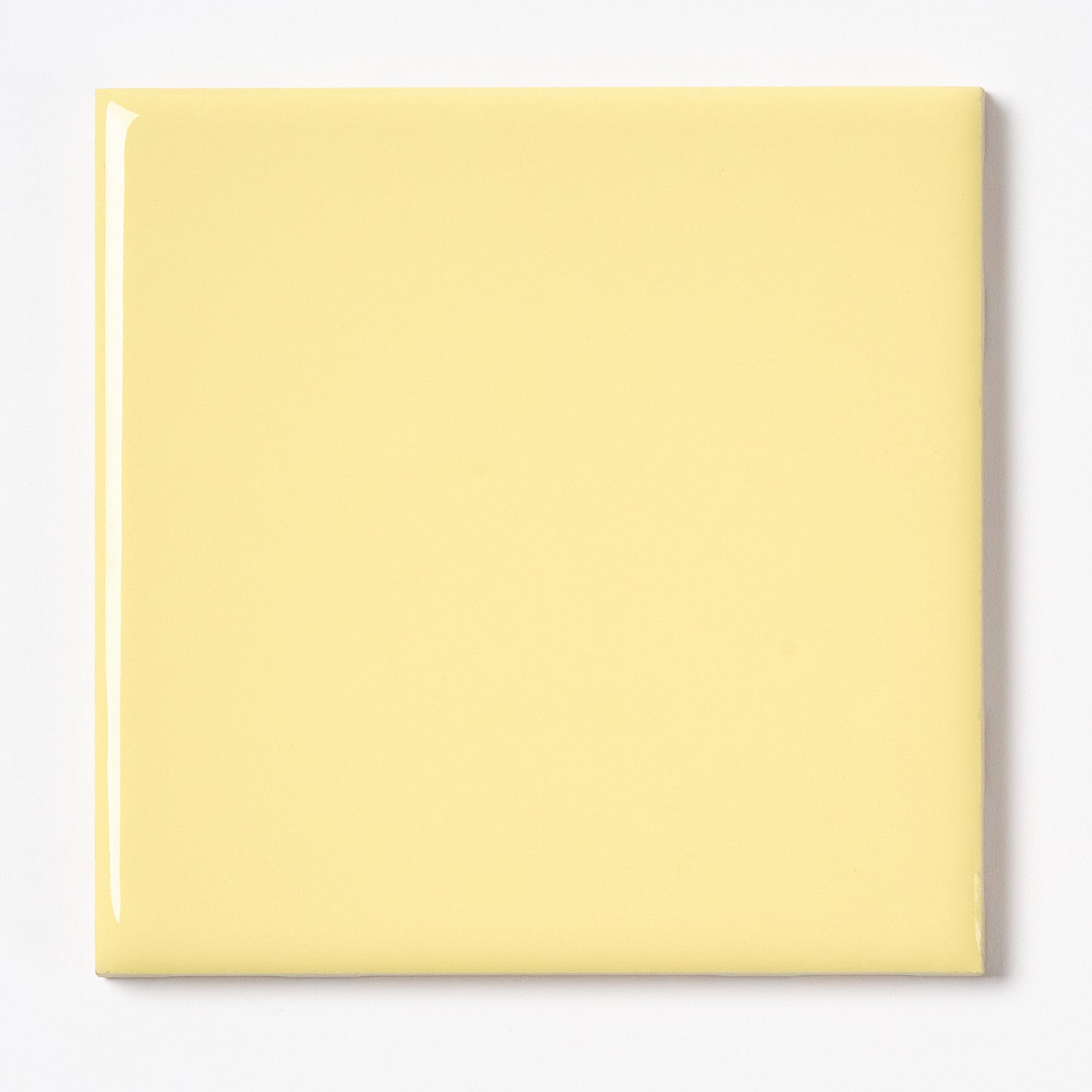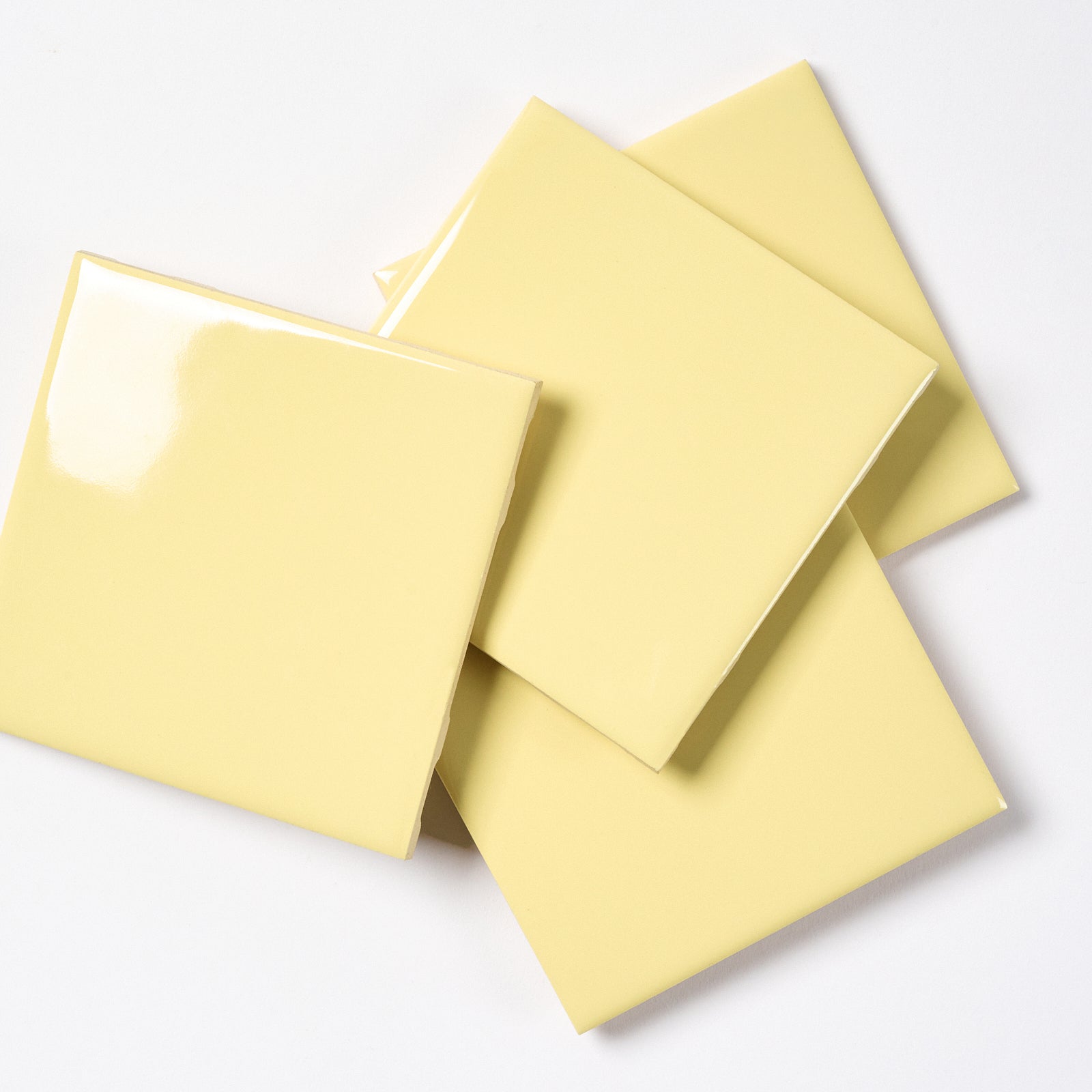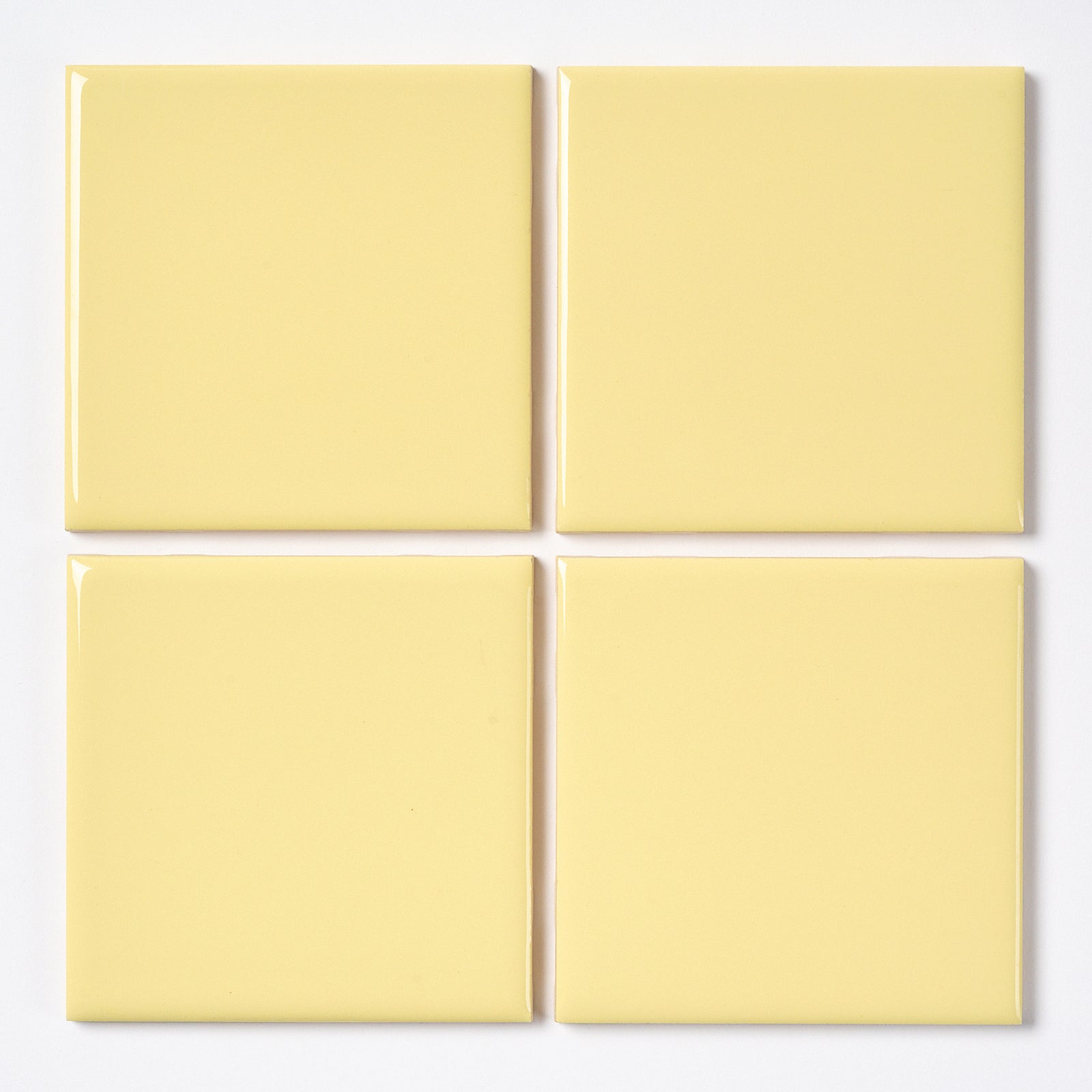 Beautiful vintage, glossy wall tile. Boxes are marked: Citrus Yellow, Color 741. Each tile is 4.25” x 4.25”, 1/4” thick, manufactured in the USA in the 1960s by Romany Tiles.