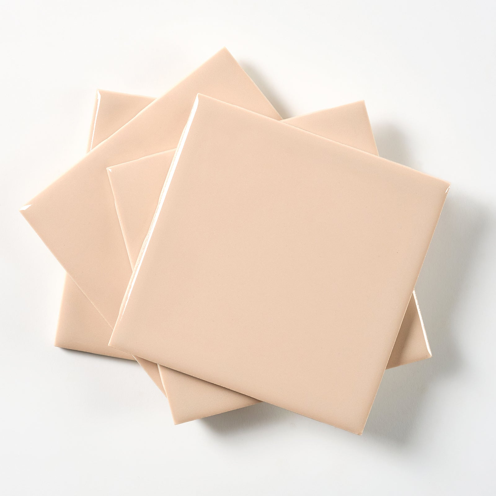 Classic glossy beige wall tile from the 1960s. Color is matched to the Florida Tile sample board, the color name is Fawn Beige. Each tile is 4 5/16” X 4 5/16”, 1/4” thick. Manufactured in the USA in the 1960s by FLORIDA TILE.