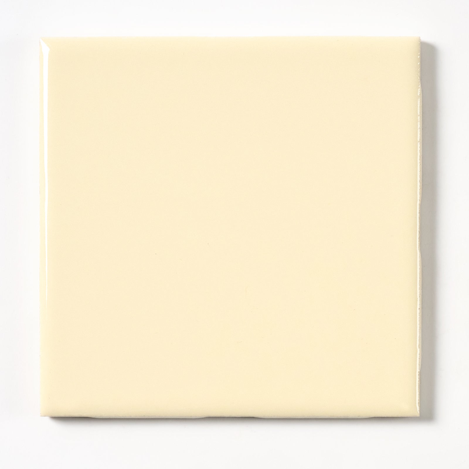 Classic glossy ivory wall tile from the 1960s. The original box is marked with the color name, Ivory. Each tile is 4 5/16” X 4 5/16”, 1/4” thick. Manufactured in the USA in the 1960s by FLORIDA TILE.