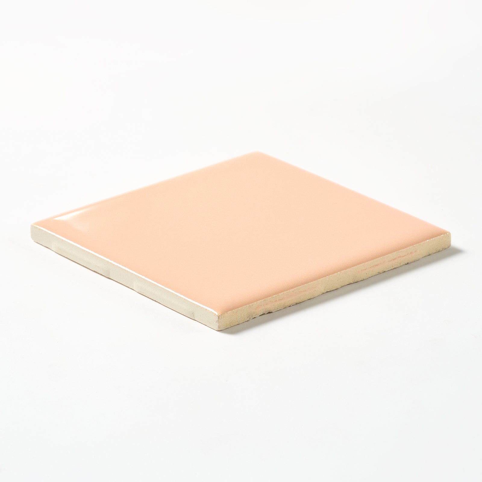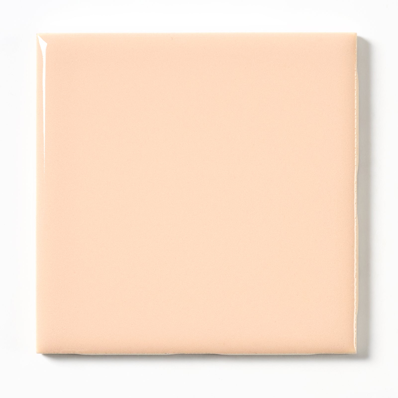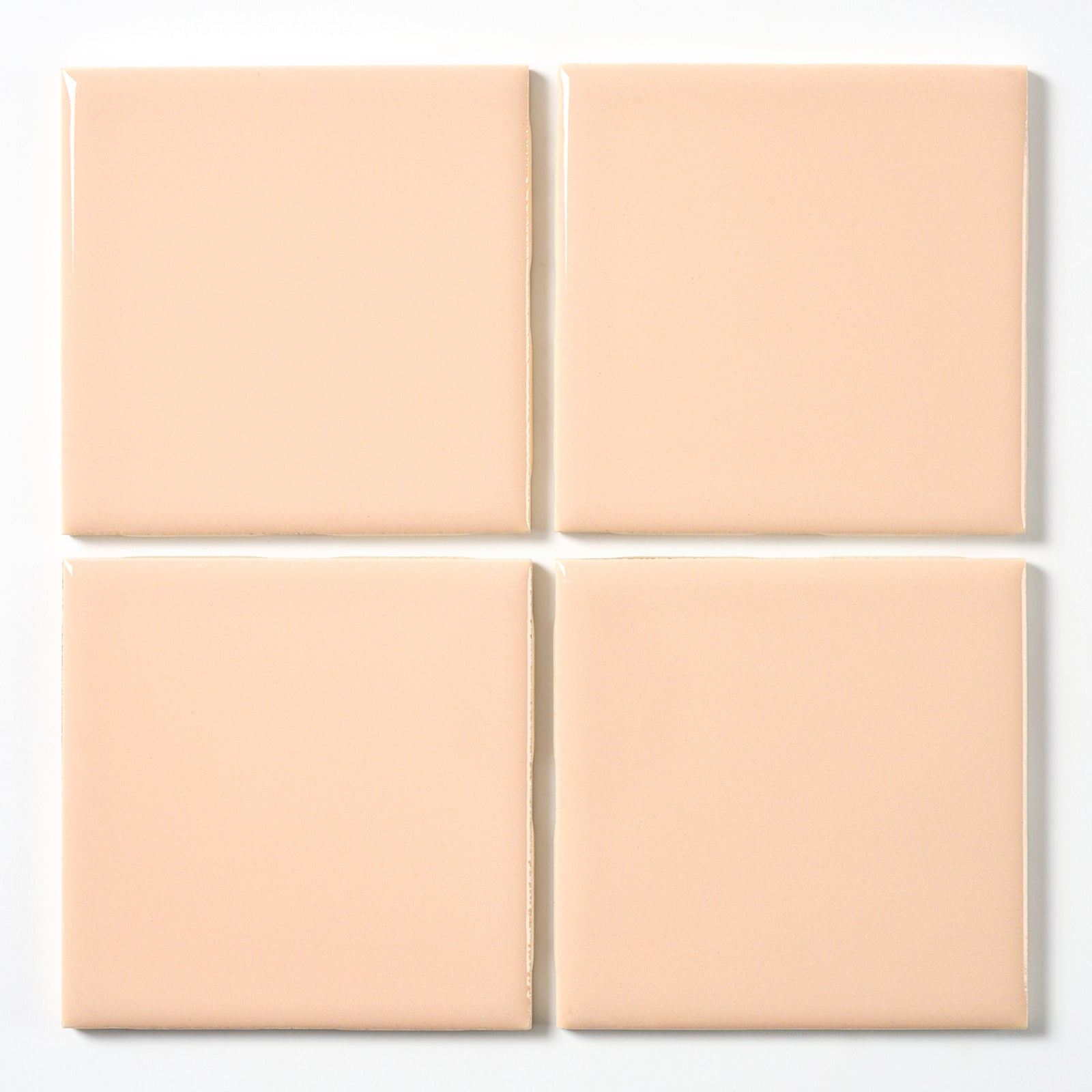 Vintage glossy tan wall tile from the 1960s. The exact color name is unknown. Each tile is 4 1/4” x 4 1/4”, 1/4” thick, manufactured in the USA in the 1960s by the Stylon Corporation.