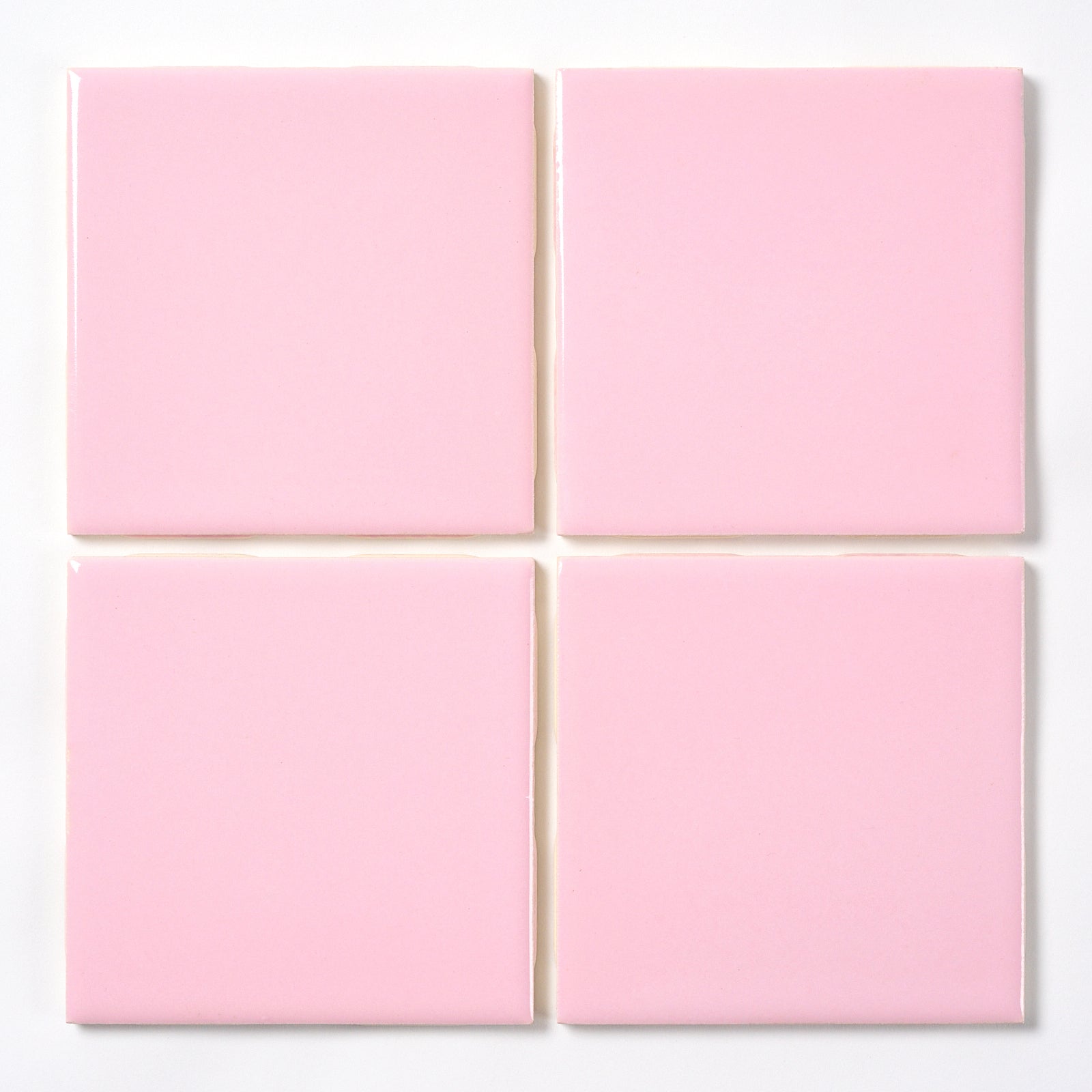 This glossy ceramic wall tile is called pink 6940. Each tile is 4.25” X 4.25” X 1/4” thick. Manufactured in the USA in the 1970s by SEARS.