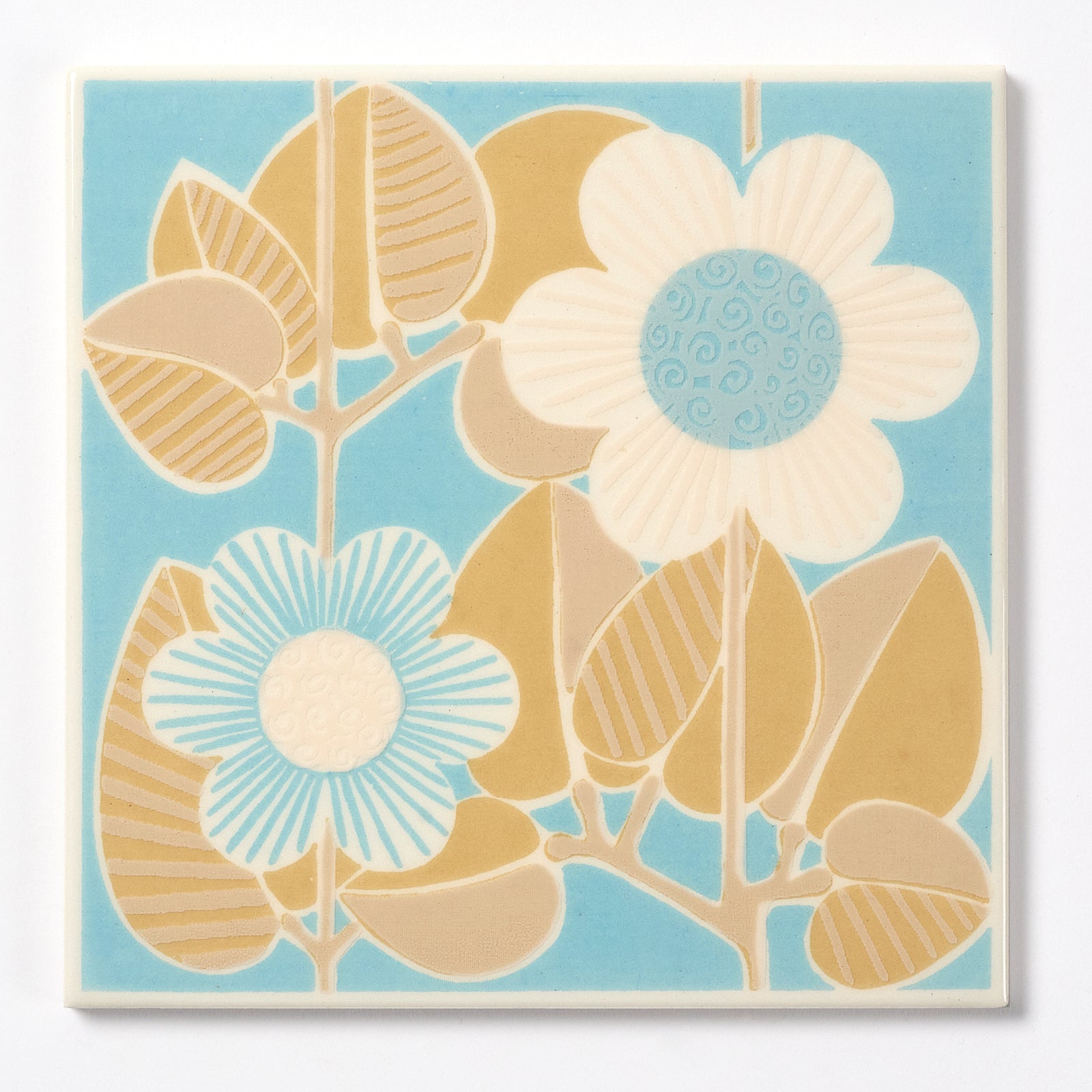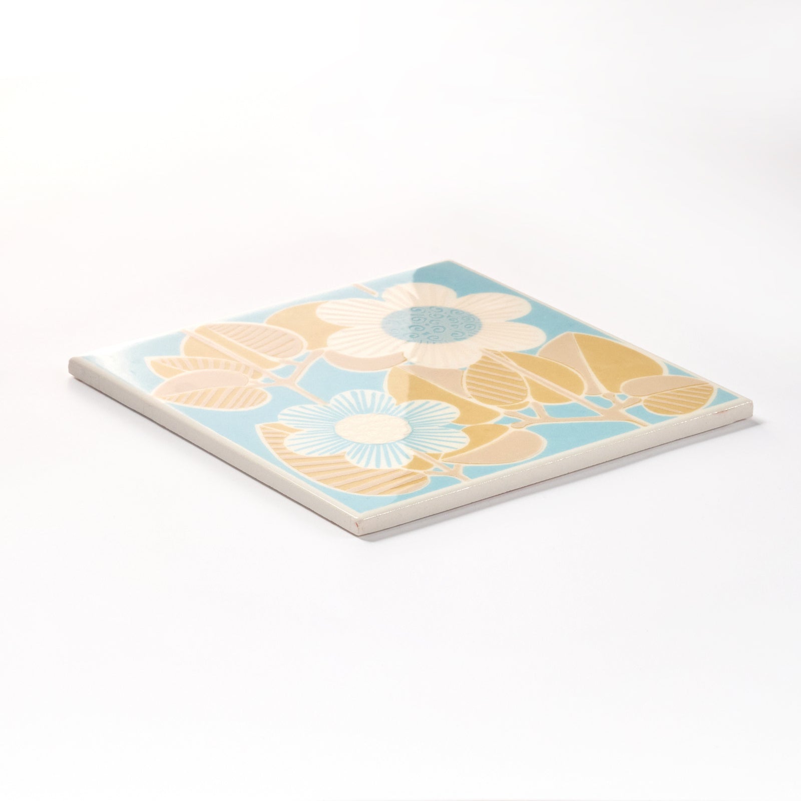1970s Vintage Italian Blue Floral Wall Tile, 306 Sq Ft Available - 18 Sq Ft Per Box