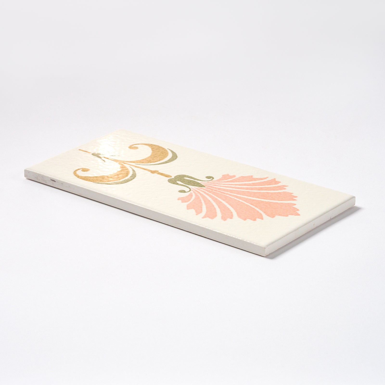 This high quality porcelain wall tile has a background color of white with a beautiful floral pattern, each tile is 4” x 8”, 1/4” thick, manufactured in Italy by Cerdisa in the 1970s.