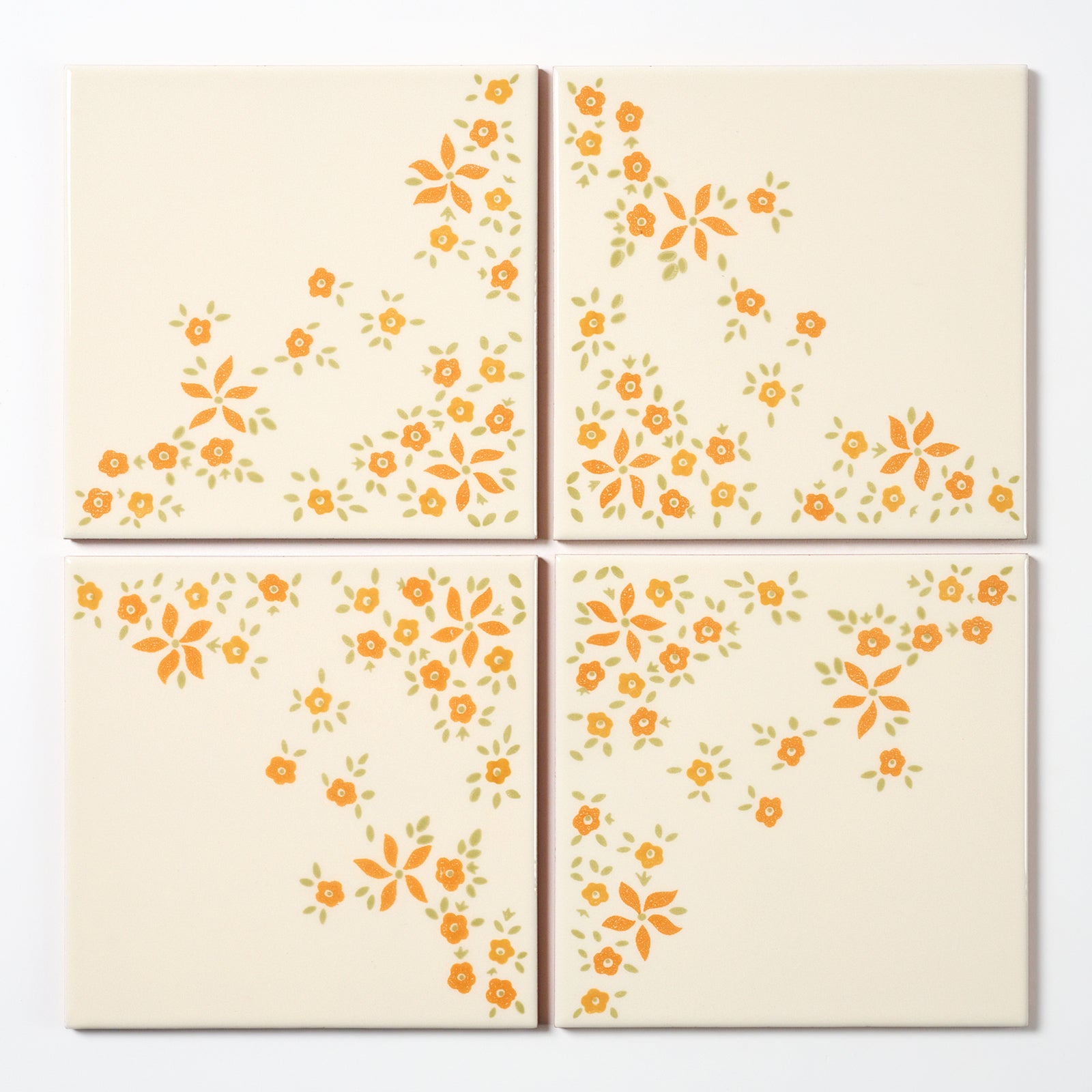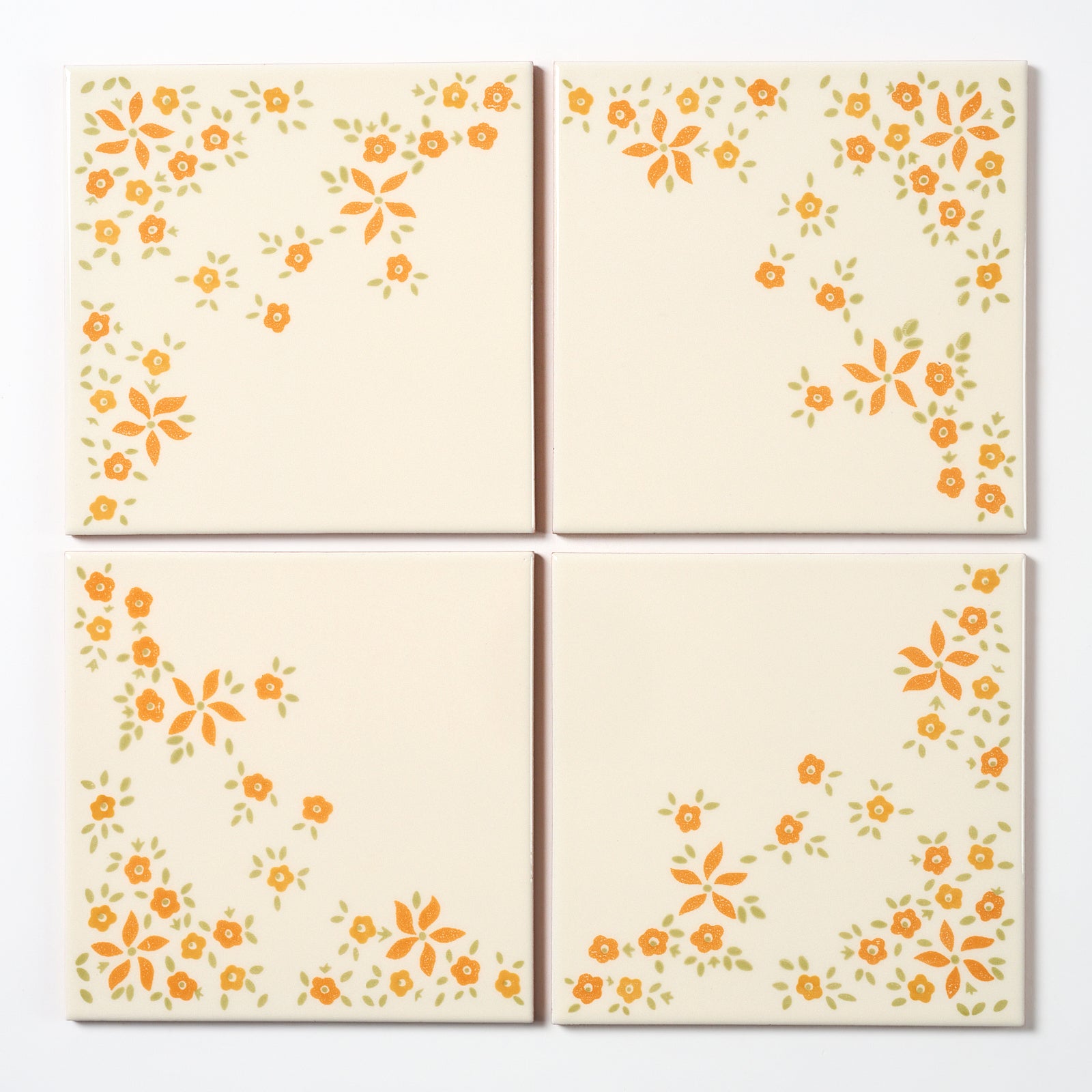 1970s Vintage Italian Orange Floral Wall Tile, 324 Sq Ft Available - 18 Sq Ft Per Box