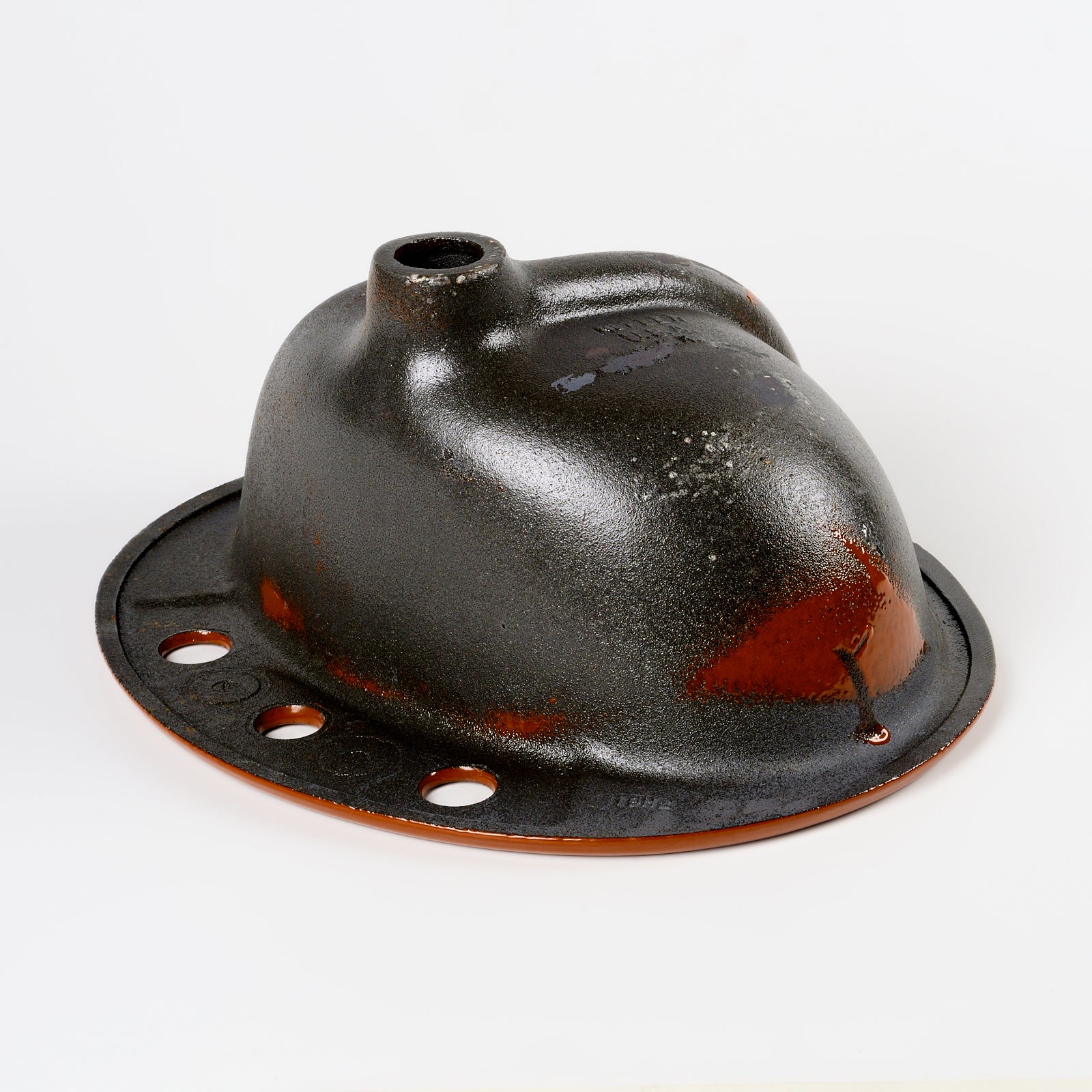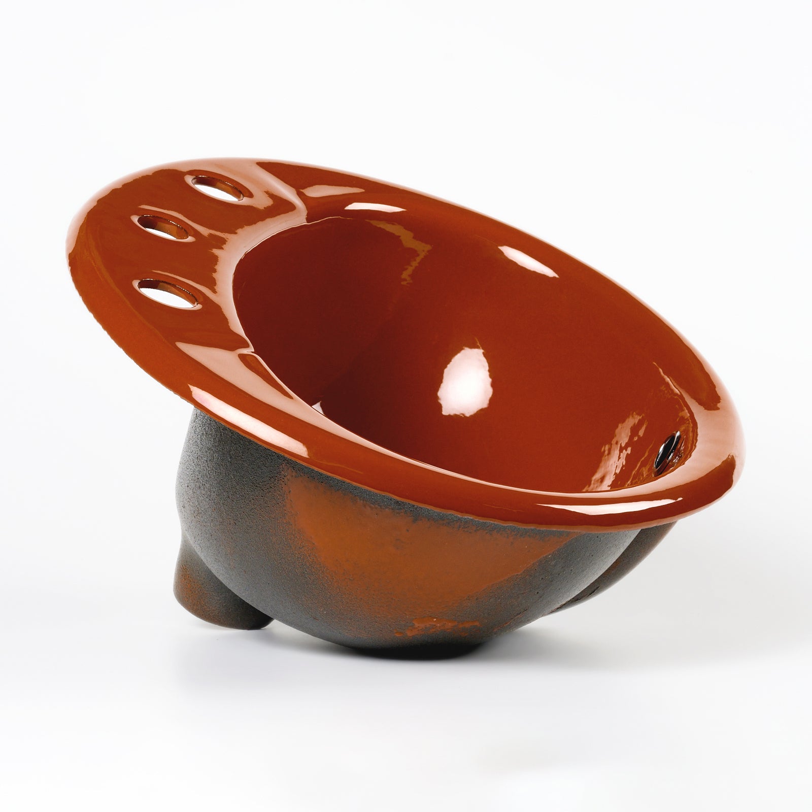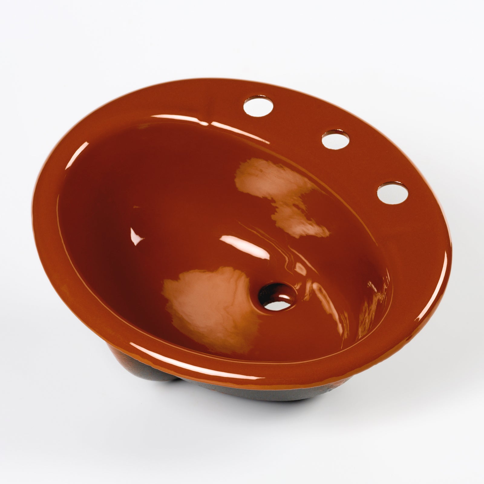 This porcelain enameled cast iron self rimming sink is a style called Farmington with the color name Sequoia. This sink is 19 1/4" x 16 1/4” with 8" centers. Manufactured in the USA by Kohler in the 1970s.