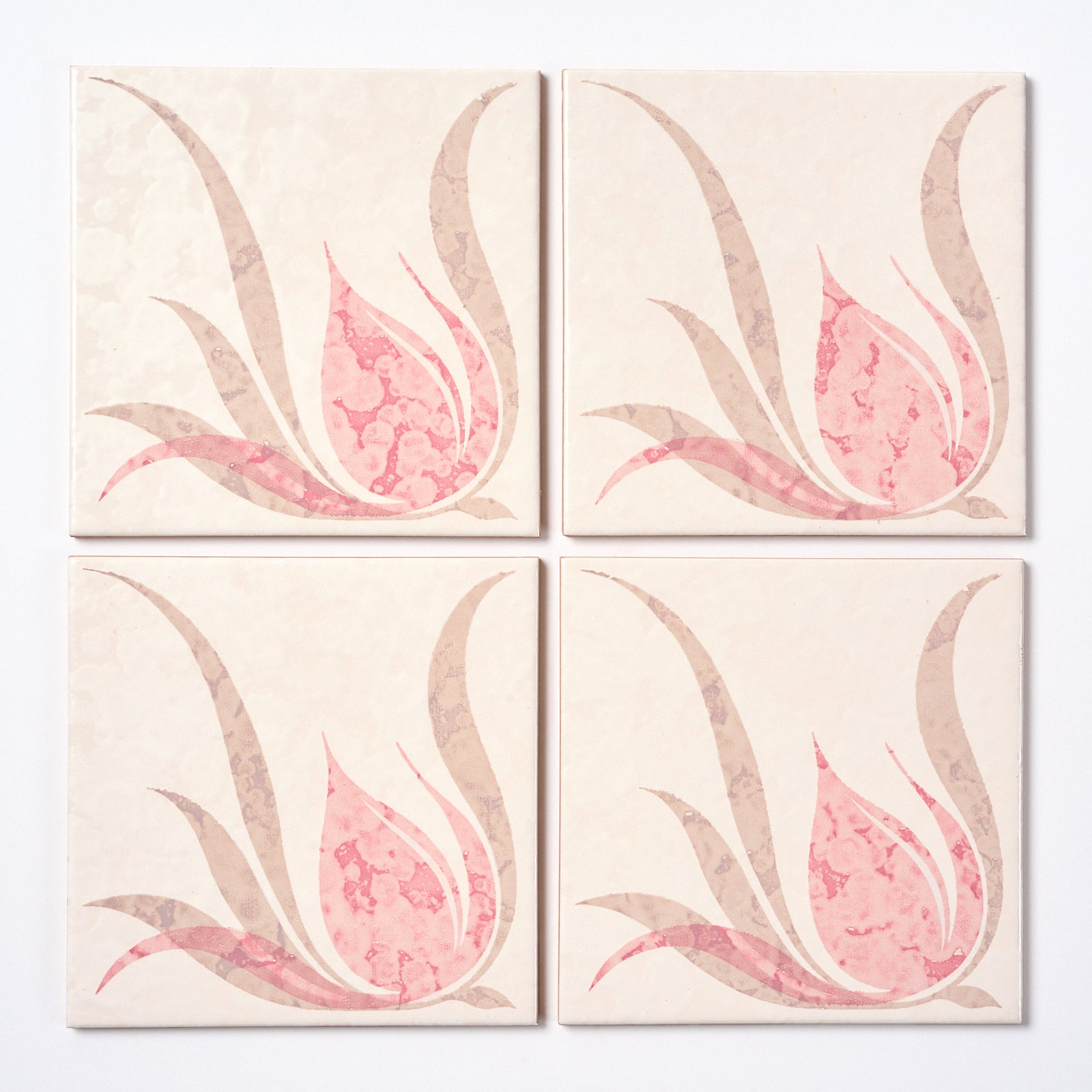 This high quality wall tile has a beautiful pink cloud-like floral pattern, each tile is 6” x 6”, 3/16” thick, manufactured in Italy by CISA in the 1970s.