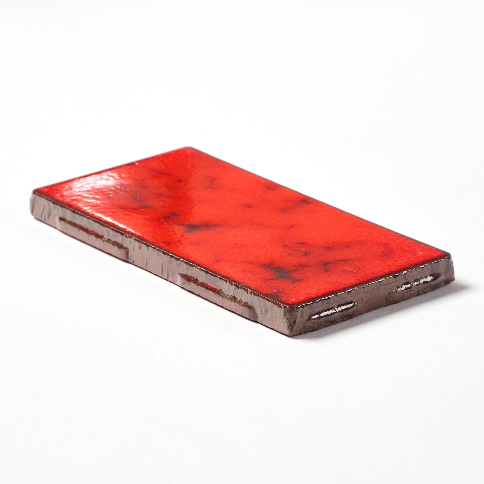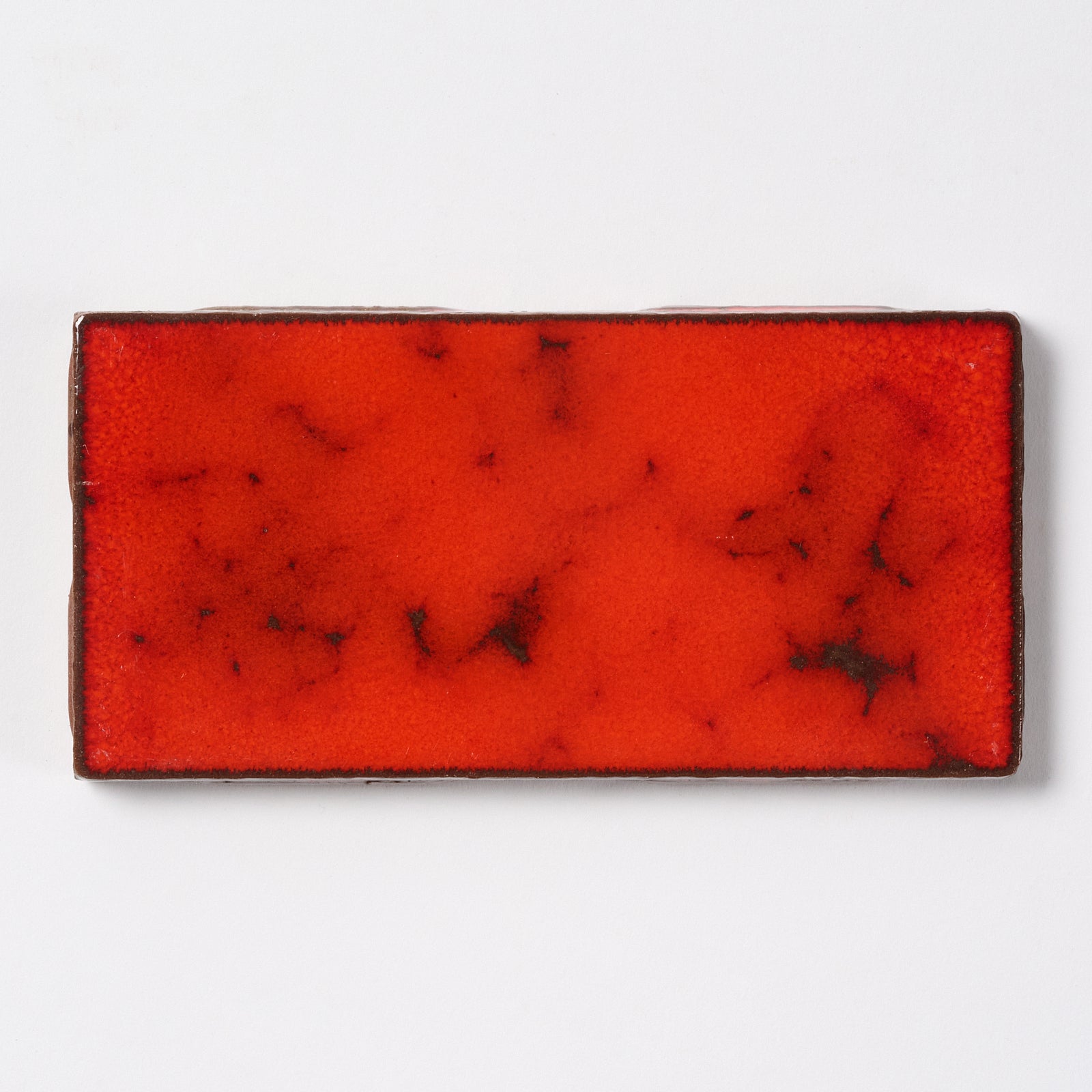 From the American Olean "Caribbean II" line is this thick, glazed wall tile in the color called "Aruba Red" number 151. Each tile is 3” x 6”, 3/8” thick, manufactured in the USA in the 1980s.