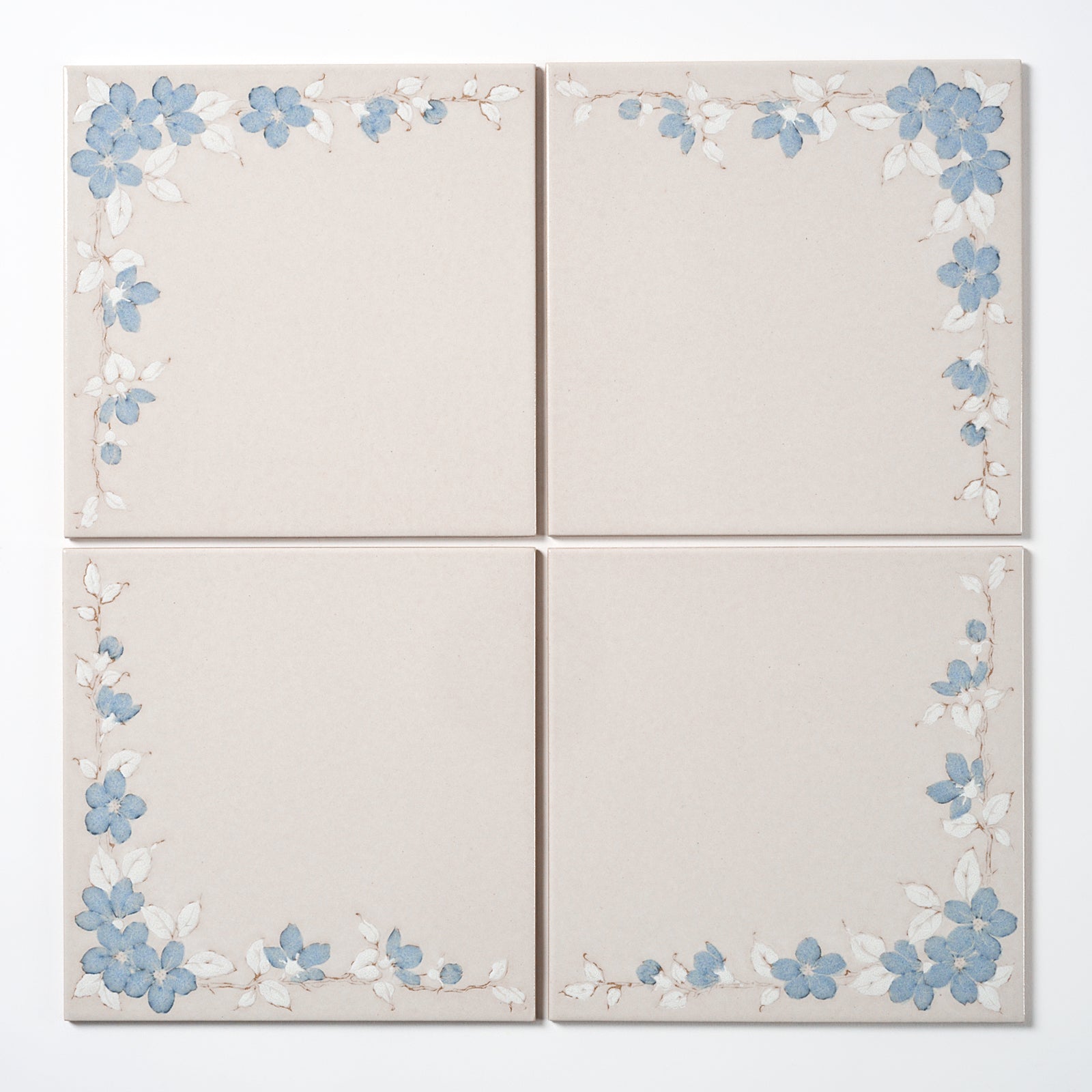 1980s "Blu Alamo" Italian Floral Floor Tile, 702 Sq Ft Available - 18 Sq Ft Per Box