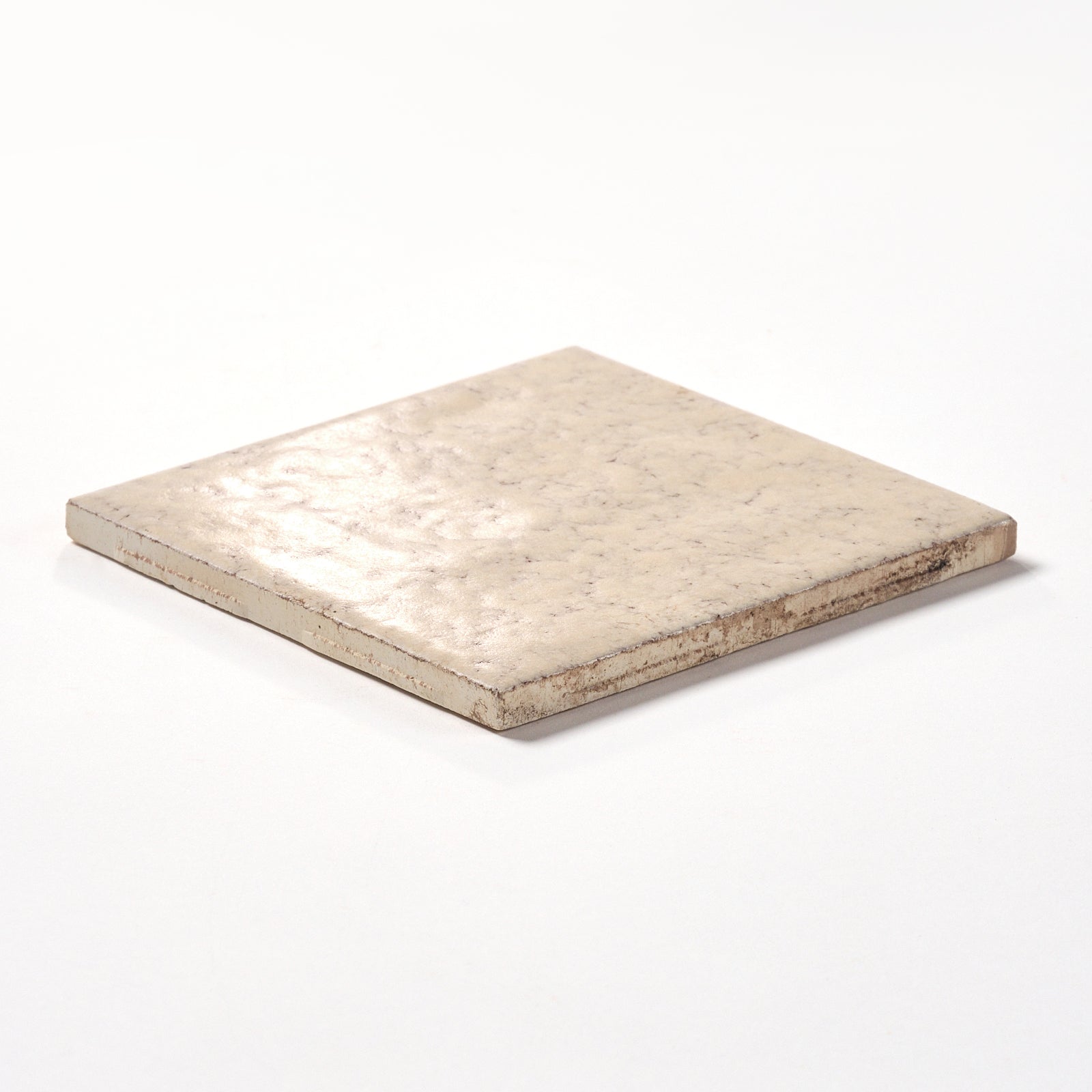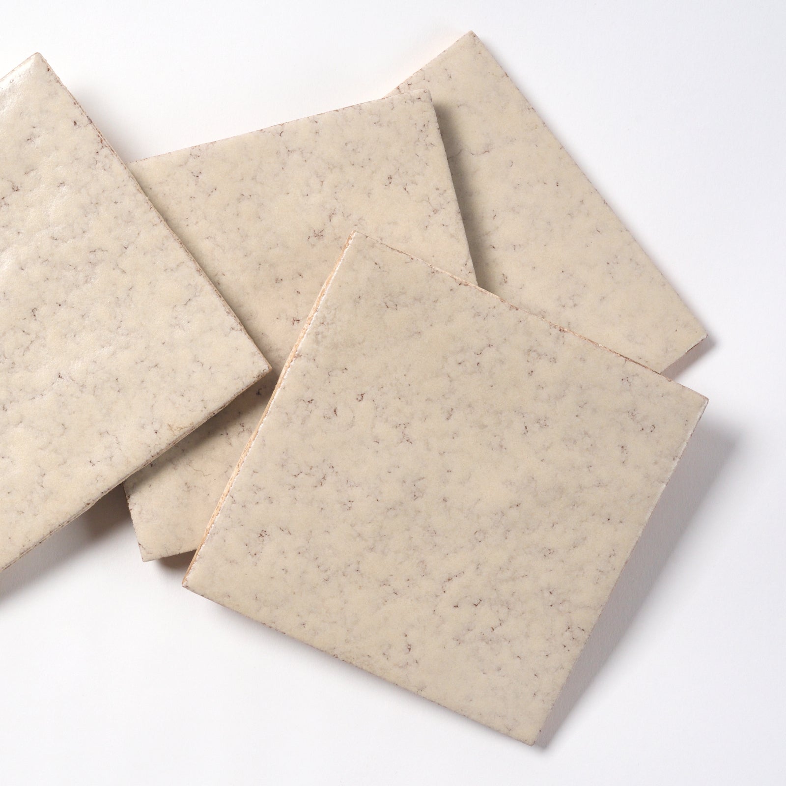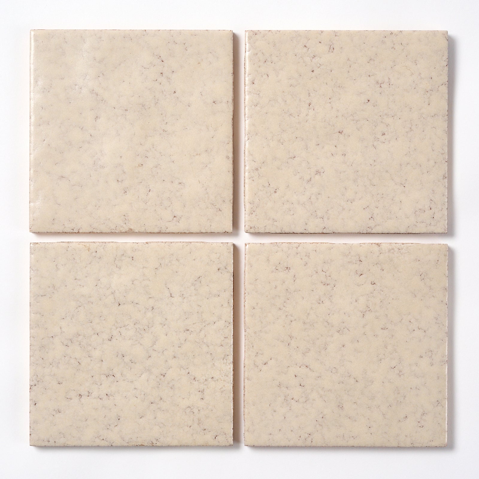 This matte, textured, glazed ceramic wall tile is like Rustic Tuscany Light Oatmeal. The exact color name is unknown. Each tile is 4 3/8” X 4 3/8” , 1/4” thick. Manufactured in the USA in the 1980s by FLORIDA TILE.