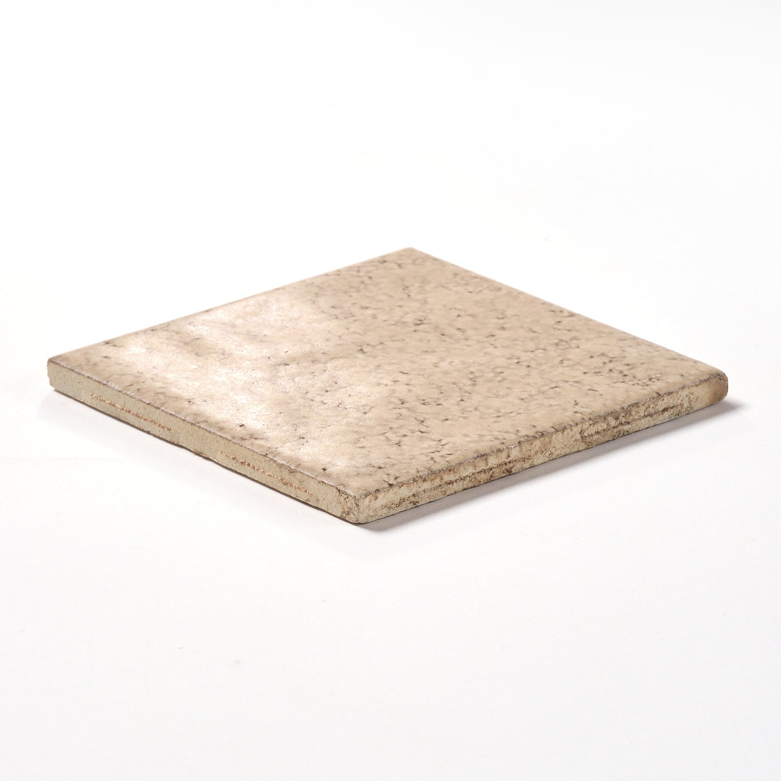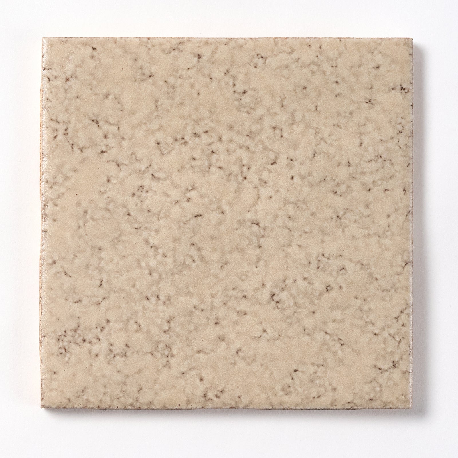 This matte, textured, glazed ceramic wall tile is like Rustic Tuscany Oatmeal. The exact color name is unknown. Each tile is 4 3/8” X 4 3/8” , 1/4” thick. Manufactured in the USA in the 1980s by FLORIDA TILE.