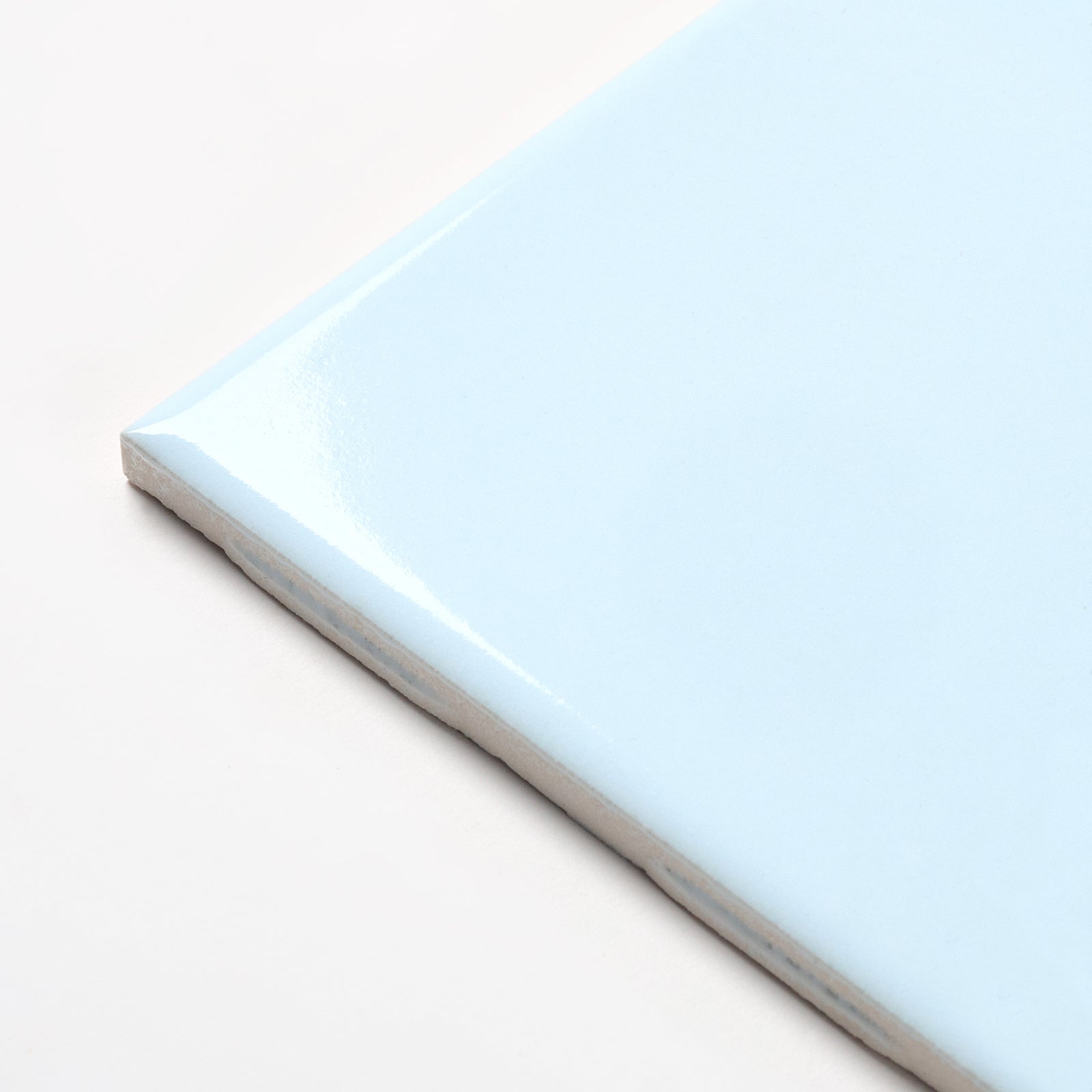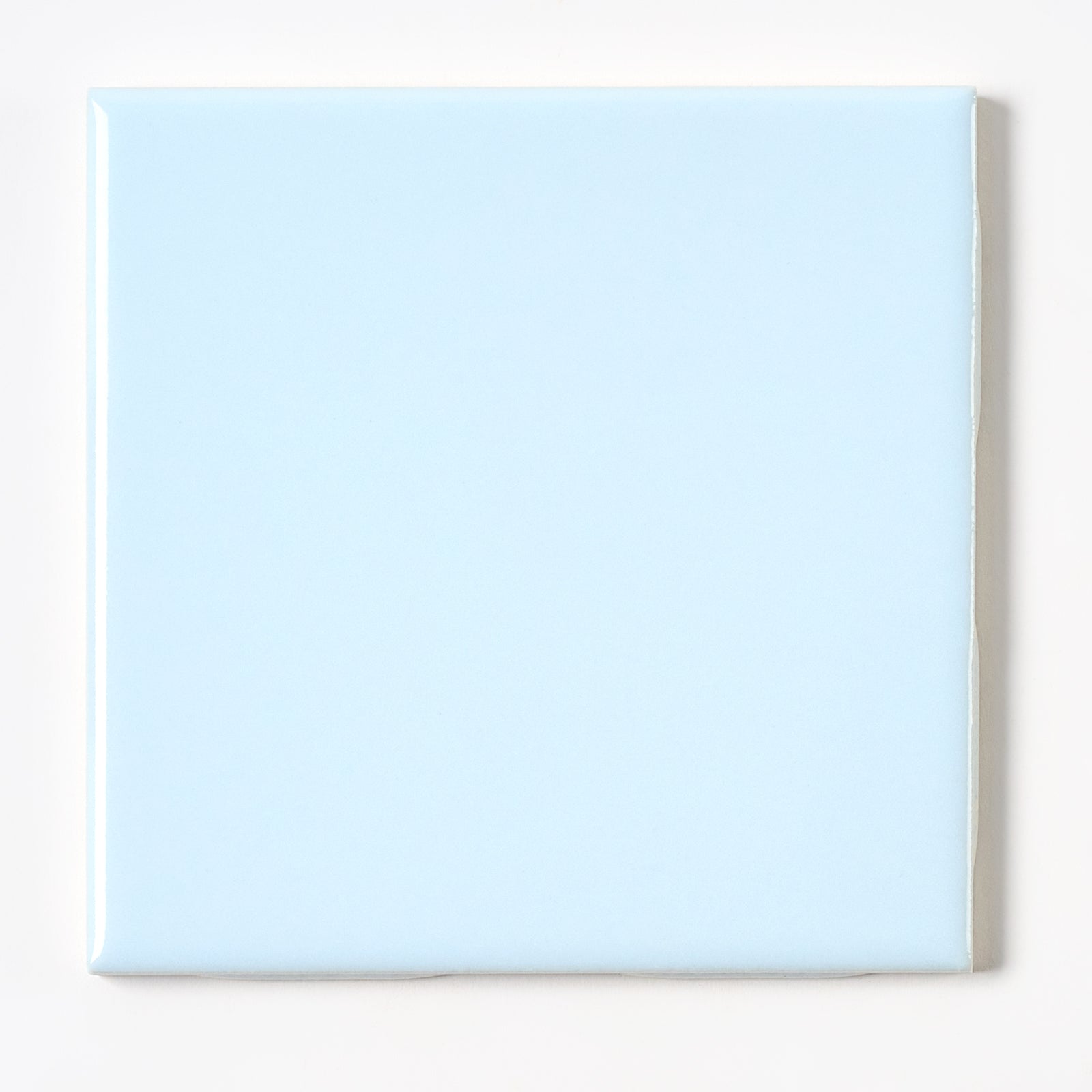 This glossy ceramic wall tile is named Soft Sky. Each tile is 4 3/8” X 4 3/8”, 1/4” thick. Manufactured in the USA in the 1990s by Mannington, a division of Mid State Tile.