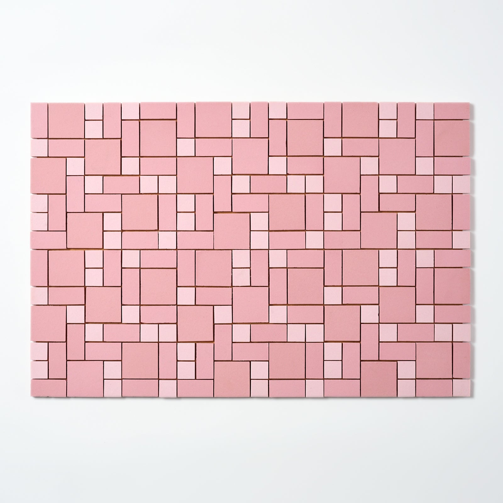 This incredible late 1950s/ early 1960s unglazed floor tile is a very vibrant pair of pinks. Each sheet is 13" x 19.625" x 1/4" thick. Manufactured by Mosaic Tile Company in its subsidiary plant Atlantic Tile Manufacturing in Matawan NJ, USA in the 1950s/ 1960s. Pattern is Block Random.