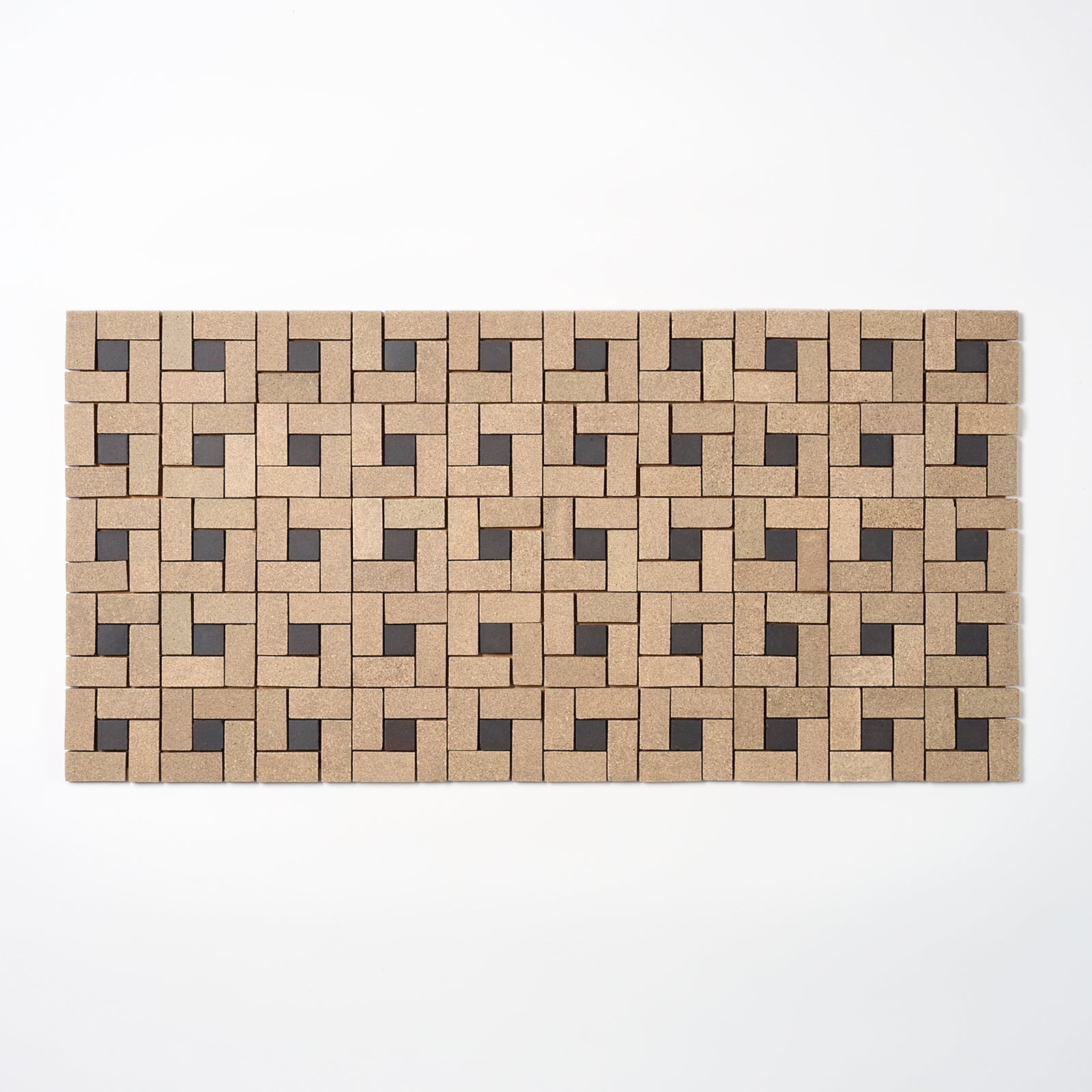 This incredible 1940s unglazed floor tile is sand gray with a black center dot. Each sheet is 12" x 24.5" x 1/4" thick. Manufactured by Newtown Tile Co. in Trenton NJ, USA in the 1940s. Pattern is Spiral.