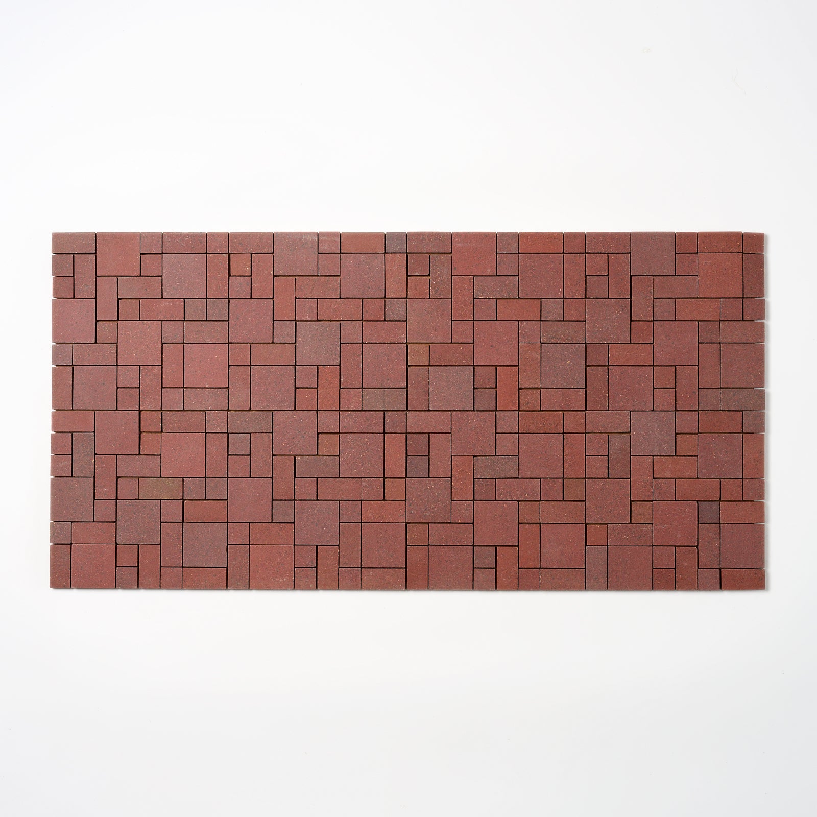 This incredible 1940s unglazed floor tile is maroon in color. Each sheet is 13" x 26" x 1/4" thick. Manufactured by Olean Tile in the USA in the 1940s. Pattern is Block Randon.