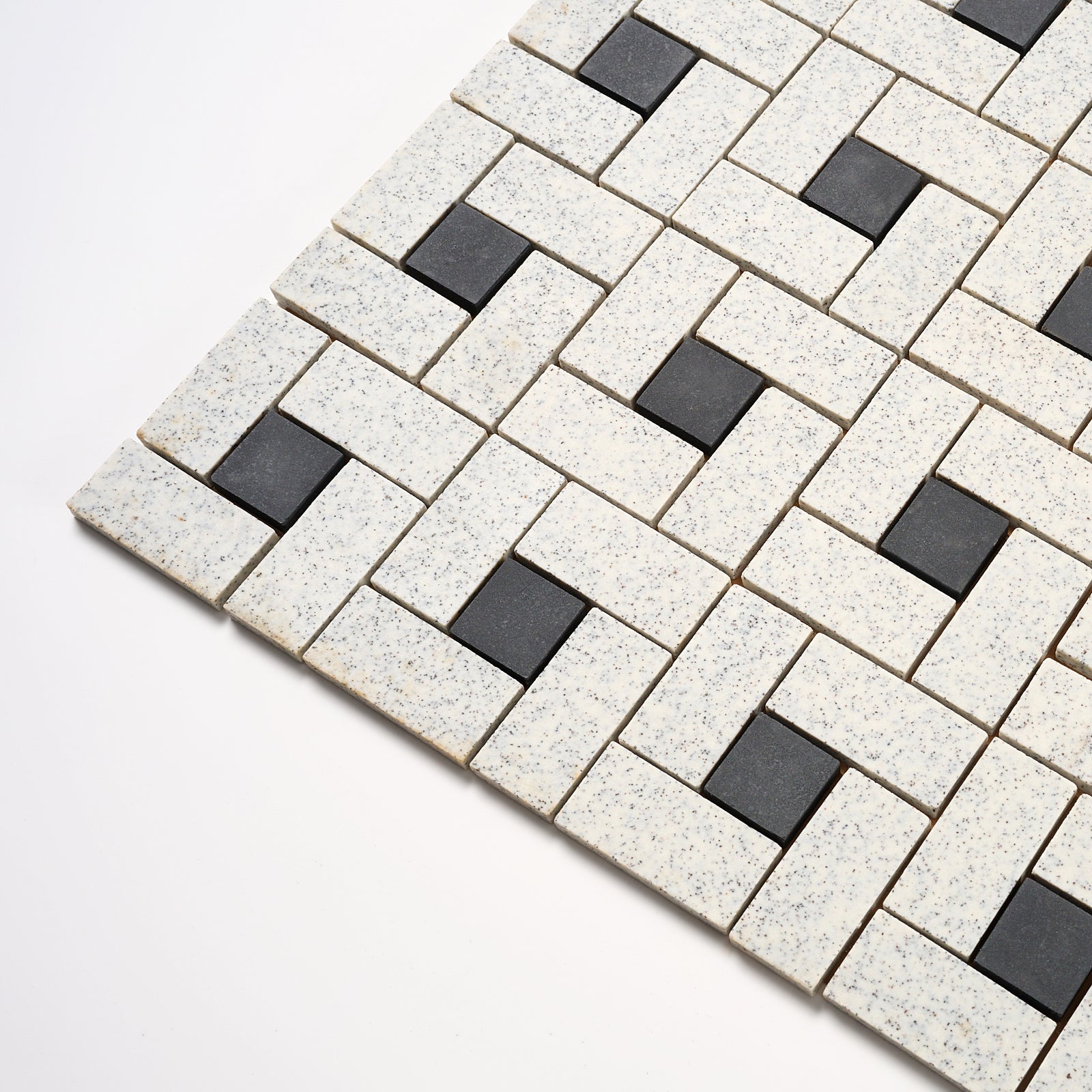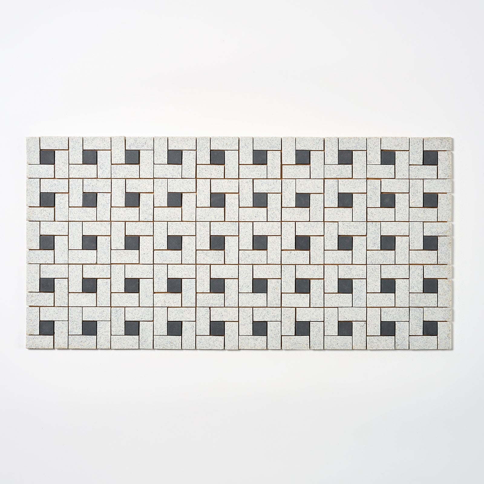 This incredible 1940s unglazed floor tile is called White and Black Spiral. Each sheet is 12" x 24" x 1/4" thick. Manufactured by Olean Tile in the USA in the 1940s. Pattern is Spiral. Crates dated 11/17/48.