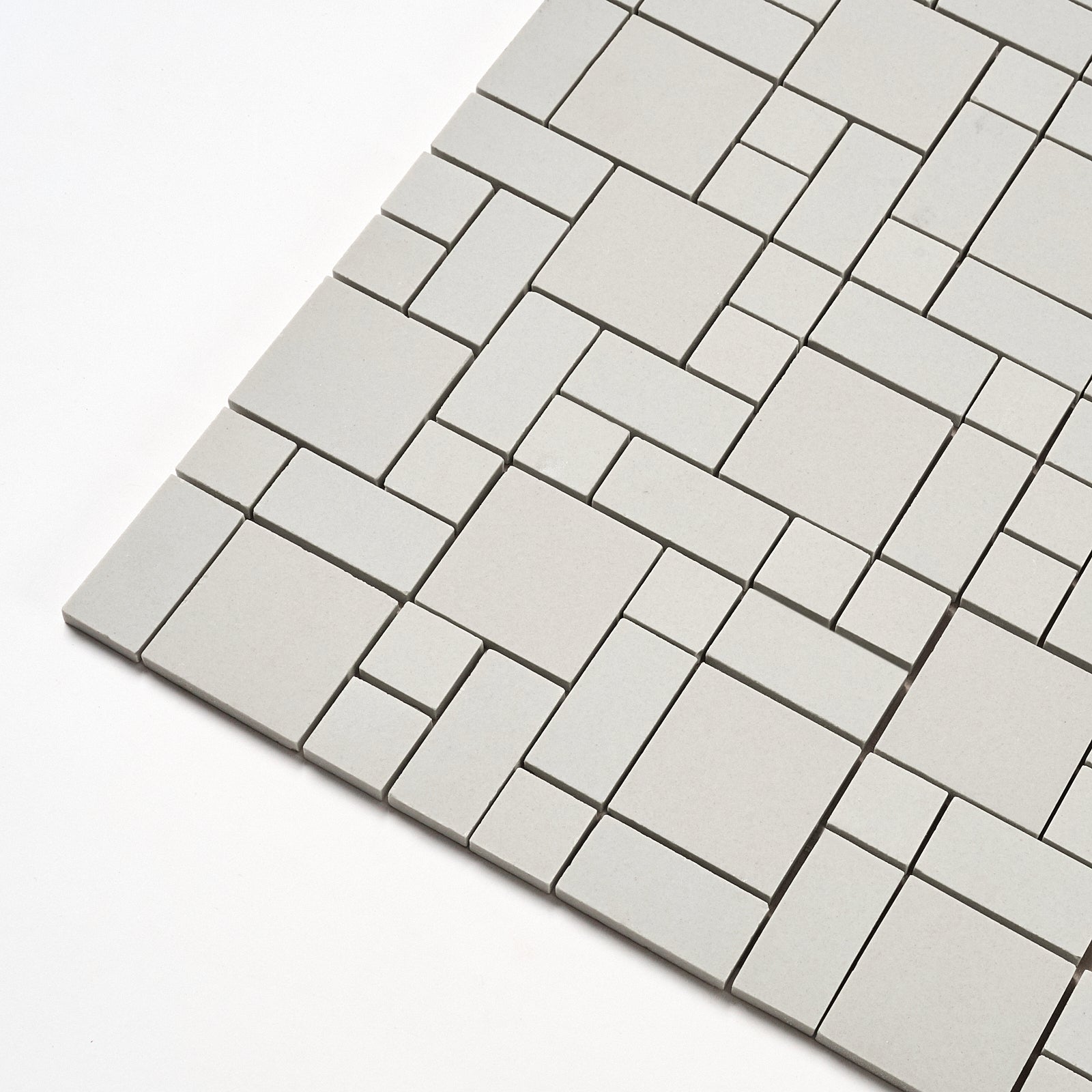 This incredible 1950s unglazed floor tile is called Light Gray. Each sheet is 13" x 26" x 1/4" thick. Manufactured by Olean Tile in the USA in the 1950s. Pattern is Block Randon.