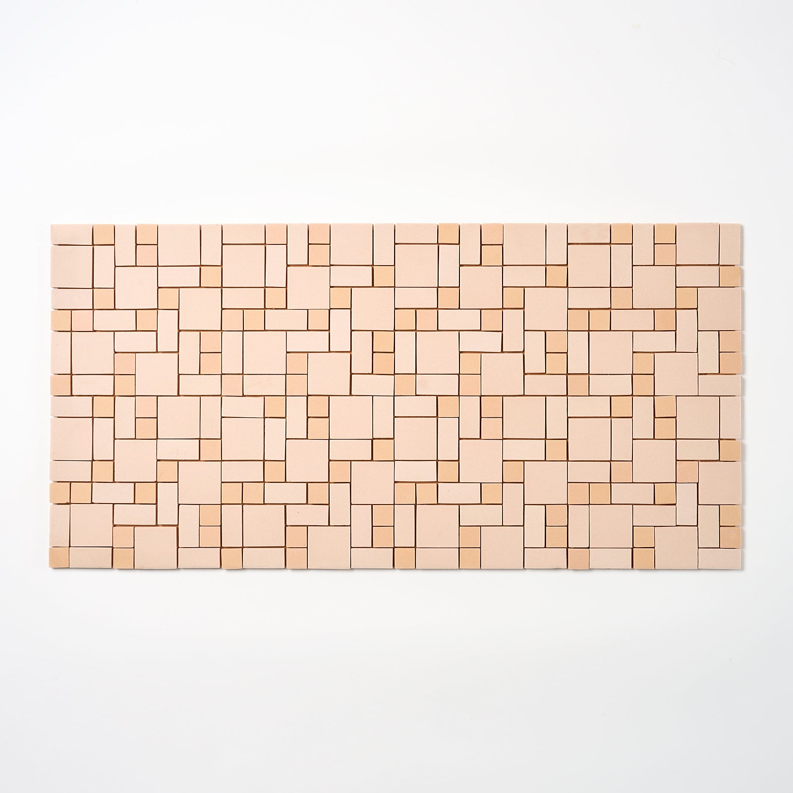 This incredible 1950s unglazed floor tile is called Persian Brown. Each sheet is 13" x 26" x 1/4" thick. Manufactured by Olean Tile in the USA in the 1950s. Pattern is Block Randon.