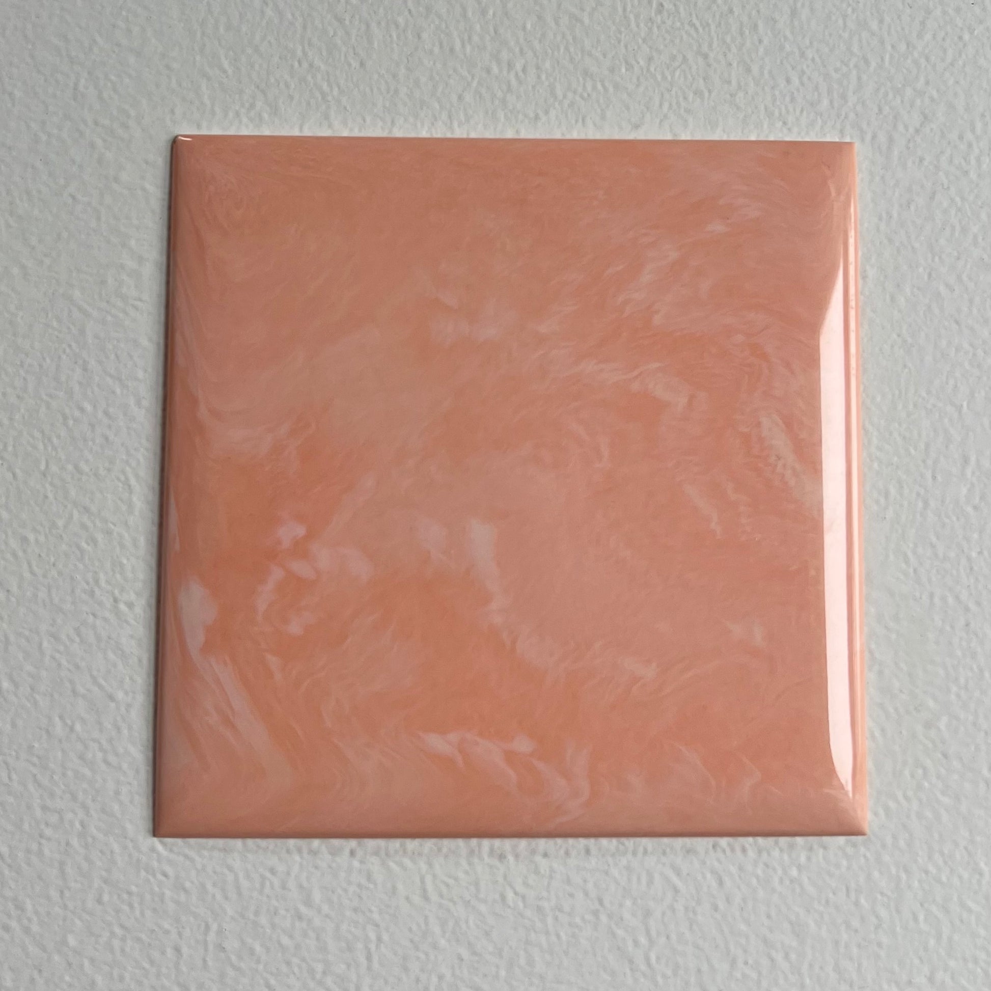 Vintage 1950's St. Clair Plastic Tile Co. peach marble plastic wall tile, each tile is 4.25” x 4.25”, 1/16” thick, manufactured in the USA in the 1950s.
