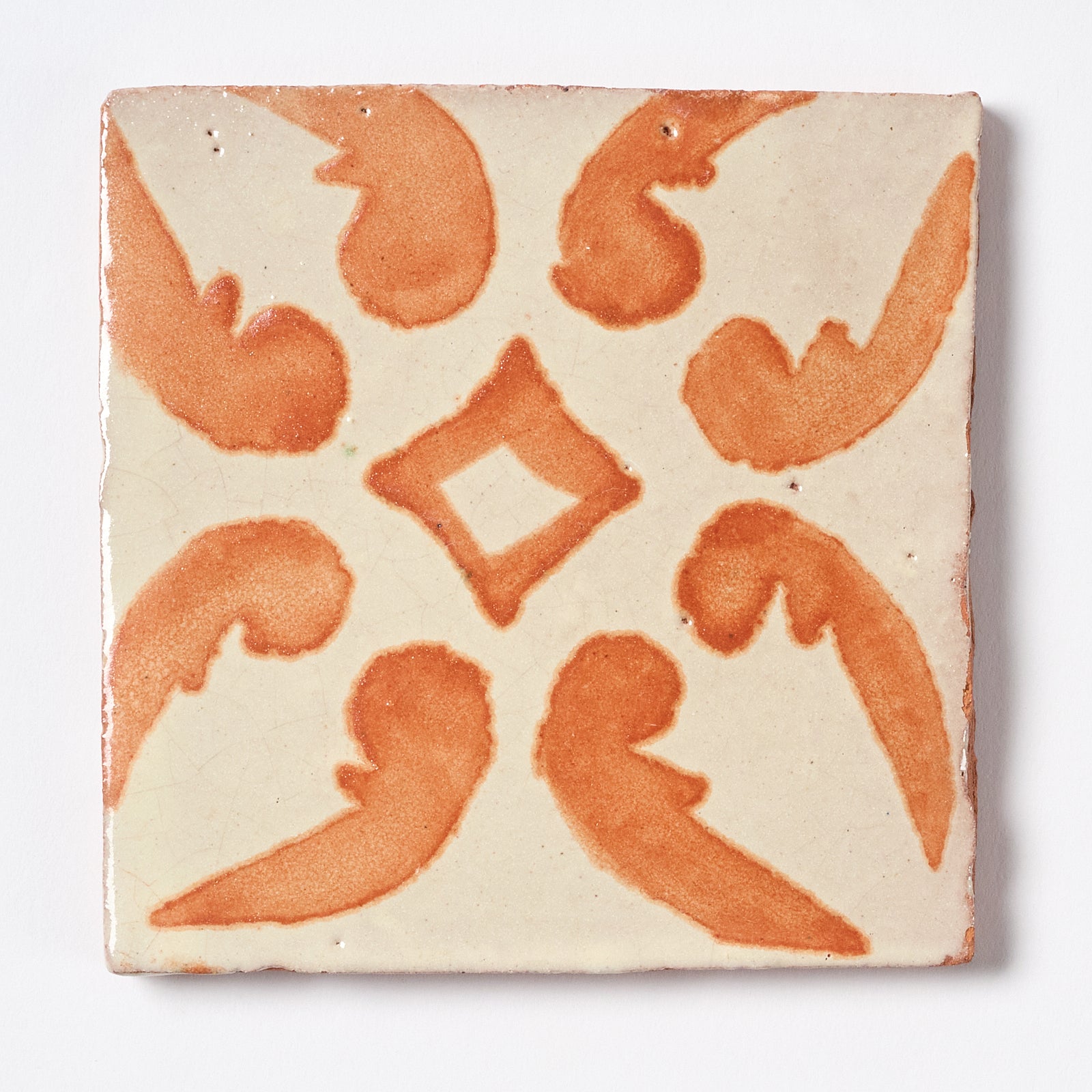 Vintage 1980s Hand Painted Orange Mexican Tiles, 9 Sq Ft Available