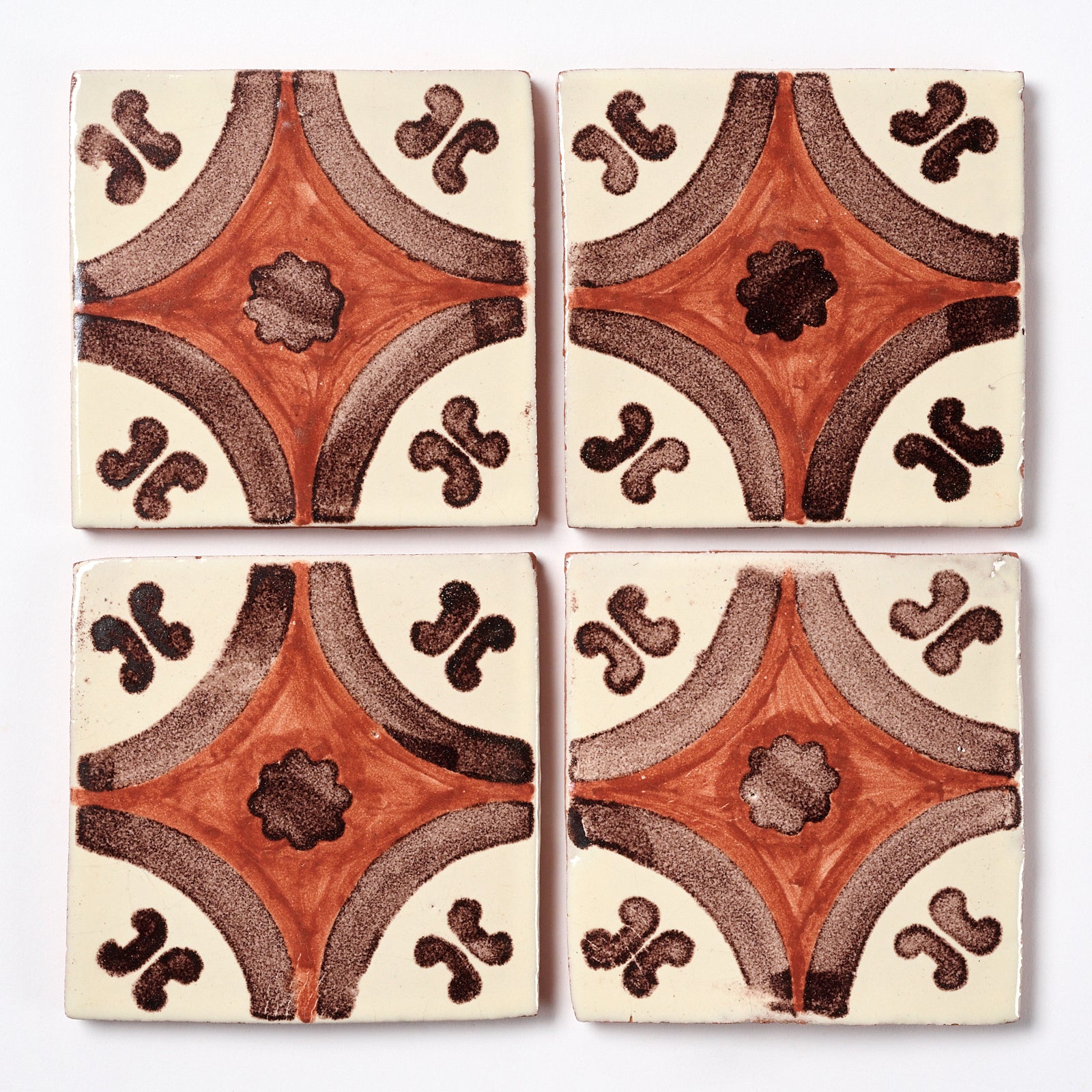 Vintage 1980s Hand Painted Rust Mexican Tiles, 11 Sq Ft Available