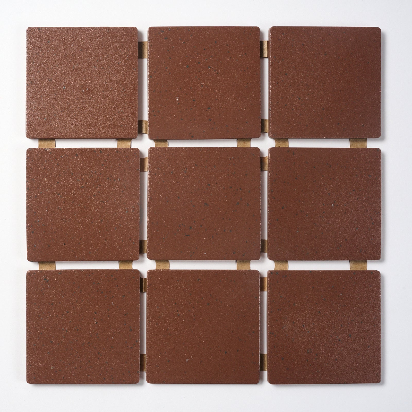 This vintage unglazed floor tile is brick red in color, each sheet is 11.75” x 11.75”, 1/4” thick, manufactured in Japan in the 1970s. Each individual tile is 3.75" x 3.75".